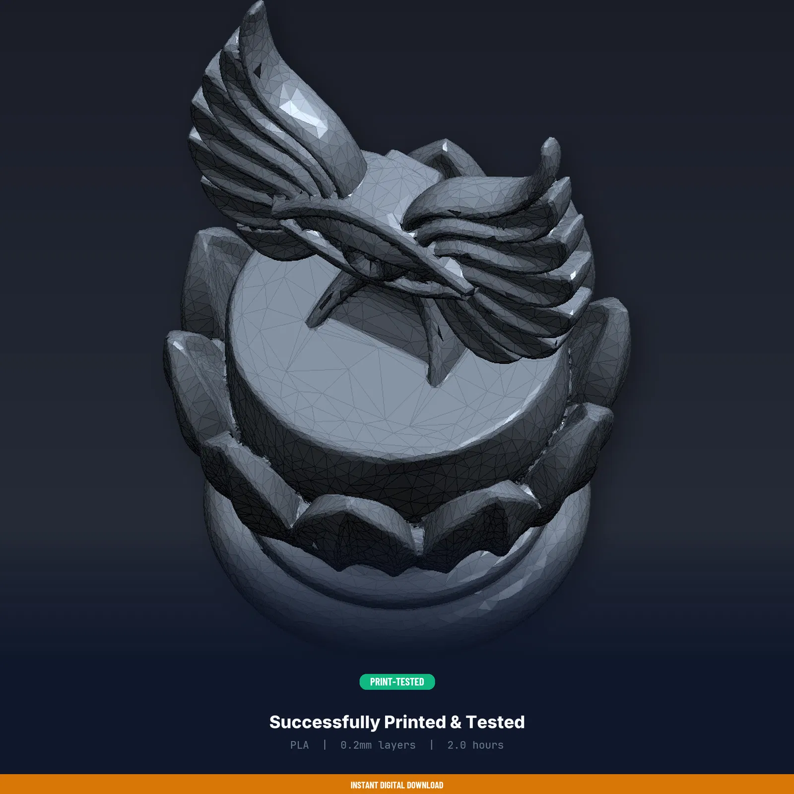 Mẫu kệ trưng bày Eye Of Horus 3D printable, tải về in liền. Có sẵn STL/3MF/OBJ và print guide thông số đã test trên nhiều máy FDM. Kích thước 31.2×50.0×30.3 mm; khuyến nghị PLA.