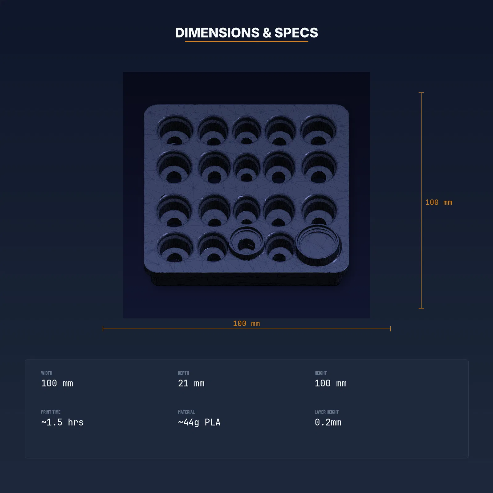 - Lượng vật liệu: ~44g PLA