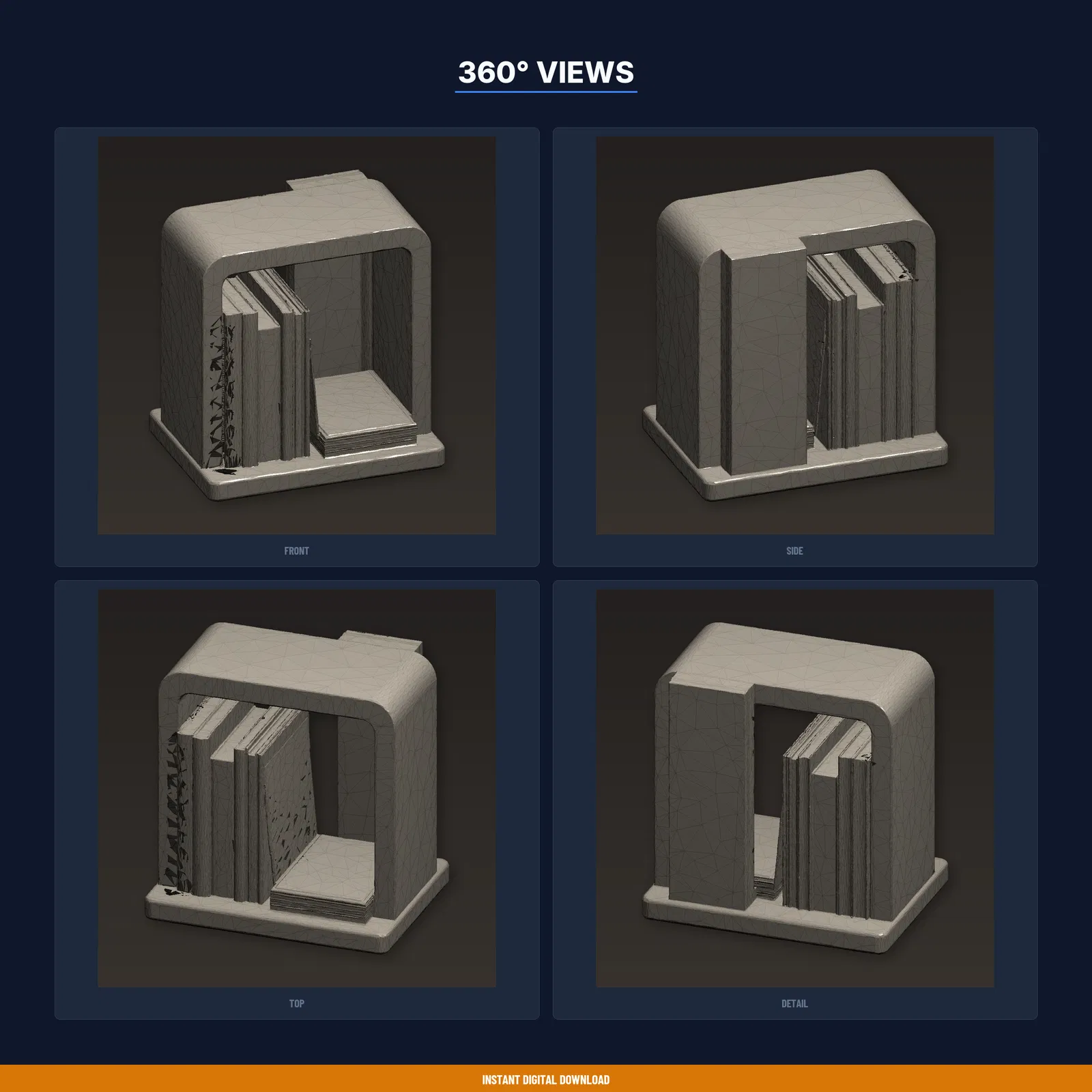 Mẫu chặn sách ẩn tạo ảo giác sách như đang rơi, phần đỡ gần như “vô hình” cho hiệu ứng magic. Gồm STL/3MF/OBJ và hướng dẫn in đã test. Kích thước 148.8×150×111mm, ~14.7h, ~442g PLA.