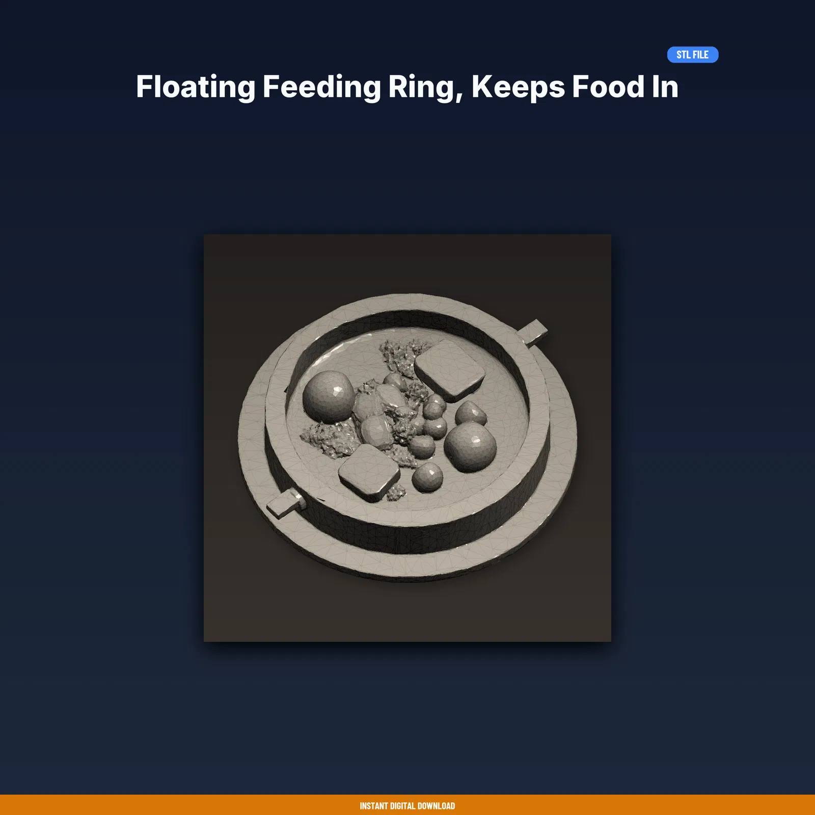 Mẫu Floating Feeding Ring in 3D giúp gom thức ăn trong một khu vực, có suction cup để neo cố định và có thể điều chỉnh. Gồm STL/3MF/OBJ kèm print guide, đã test trên nhiều máy FDM. License thương mại đi kèm.