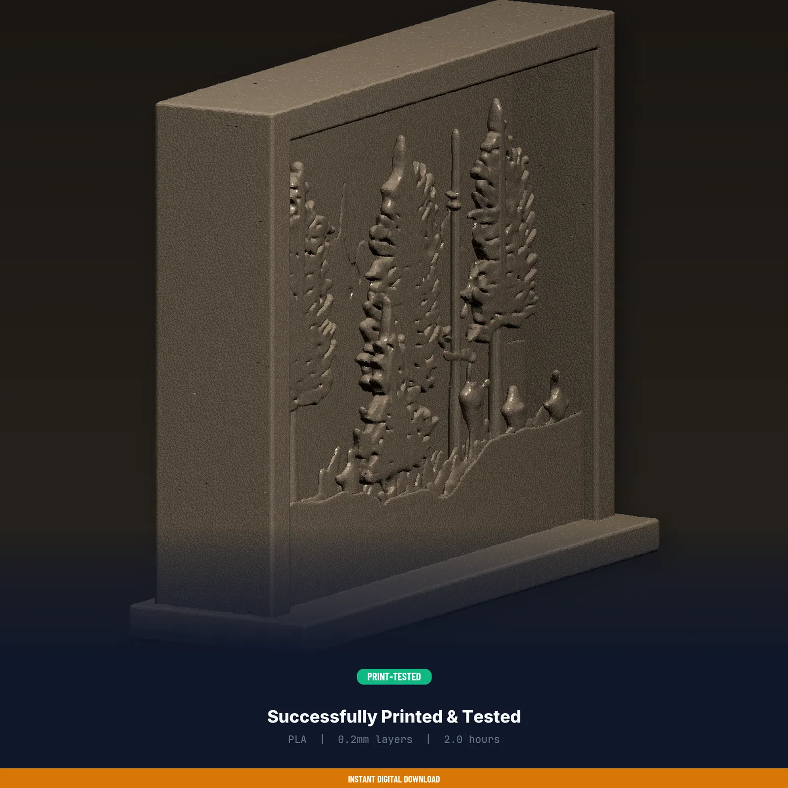Một mẫu in 3D độc đáo — Forest Silhouette Layered Panel. Đã test trên hơn 8 máy in FDM. Tải về và in ngay.