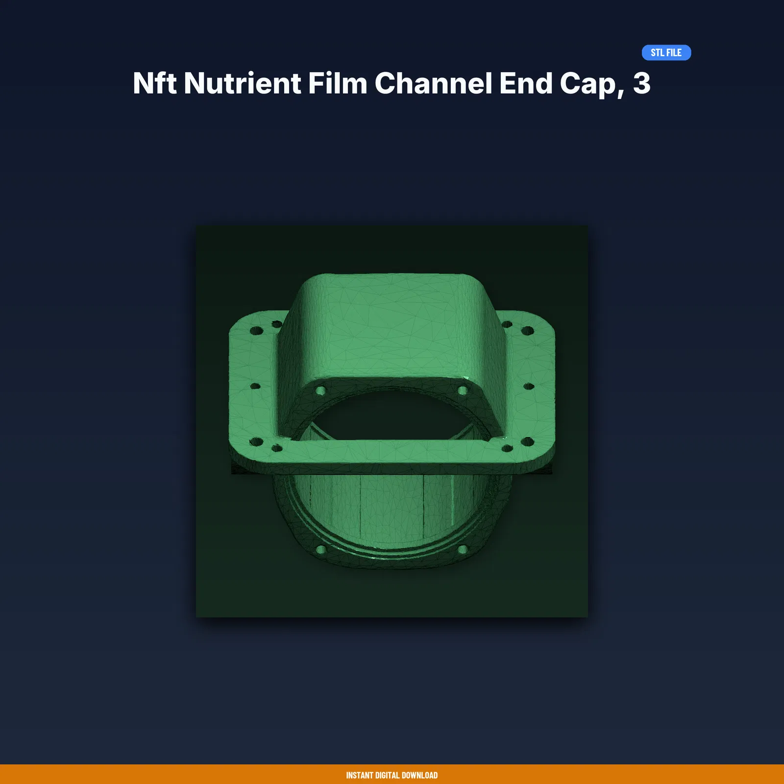 Mẫu Nft Nutrient Film Channel End Cap cho ống 3 inch, thiết kế kín nước (watertight) và có cổng xả. Gồm file STL/3MF/OBJ và hướng dẫn in. Đã test trên nhiều máy FDM, khuyến nghị PLA (PETG cũng ổn).
