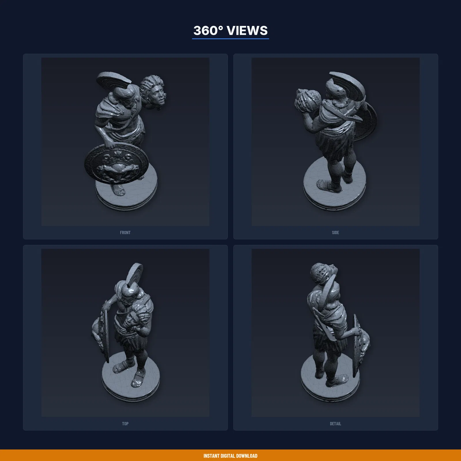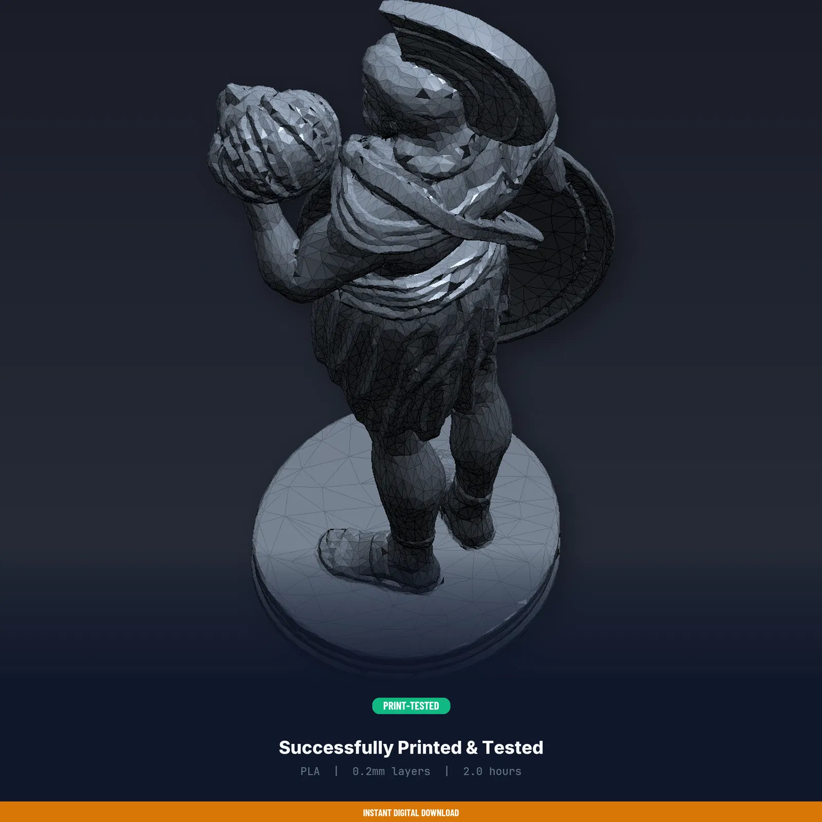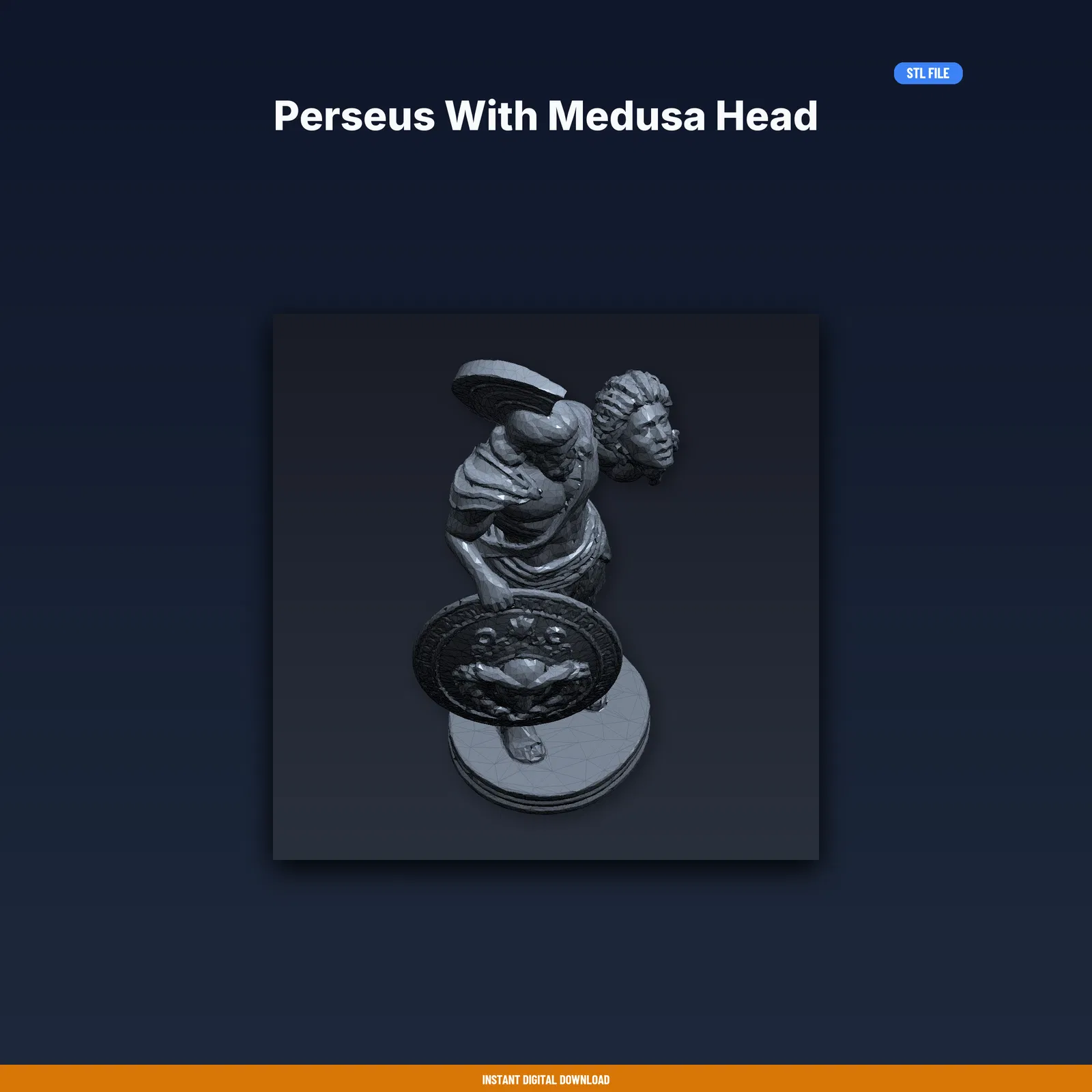 Mẫu Perseus cầm đầu Medusa dành cho in 3D, đã test trên 8+ máy FDM. Gói tải gồm STL/3MF/OBJ và hướng dẫn in kèm thông số. Kích thước 29.5×80.0×34.7 mm, khuyến nghị PLA.