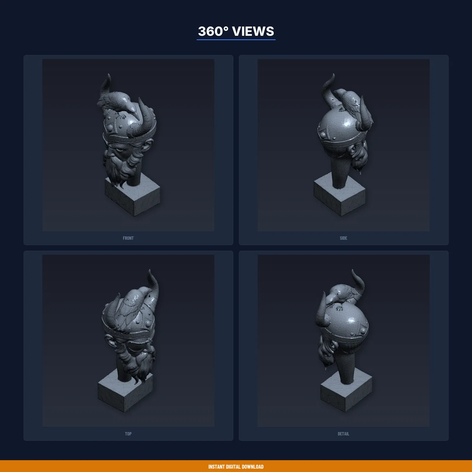 Mẫu tượng bán thân Odin Allfather độc đáo để in 3D. Bao gồm file STL/3MF/OBJ và print guide thông số đã test. Kích thước 49.0×100.0×38.6mm, khuyến nghị PLA; đã thử trên nhiều máy FDM.