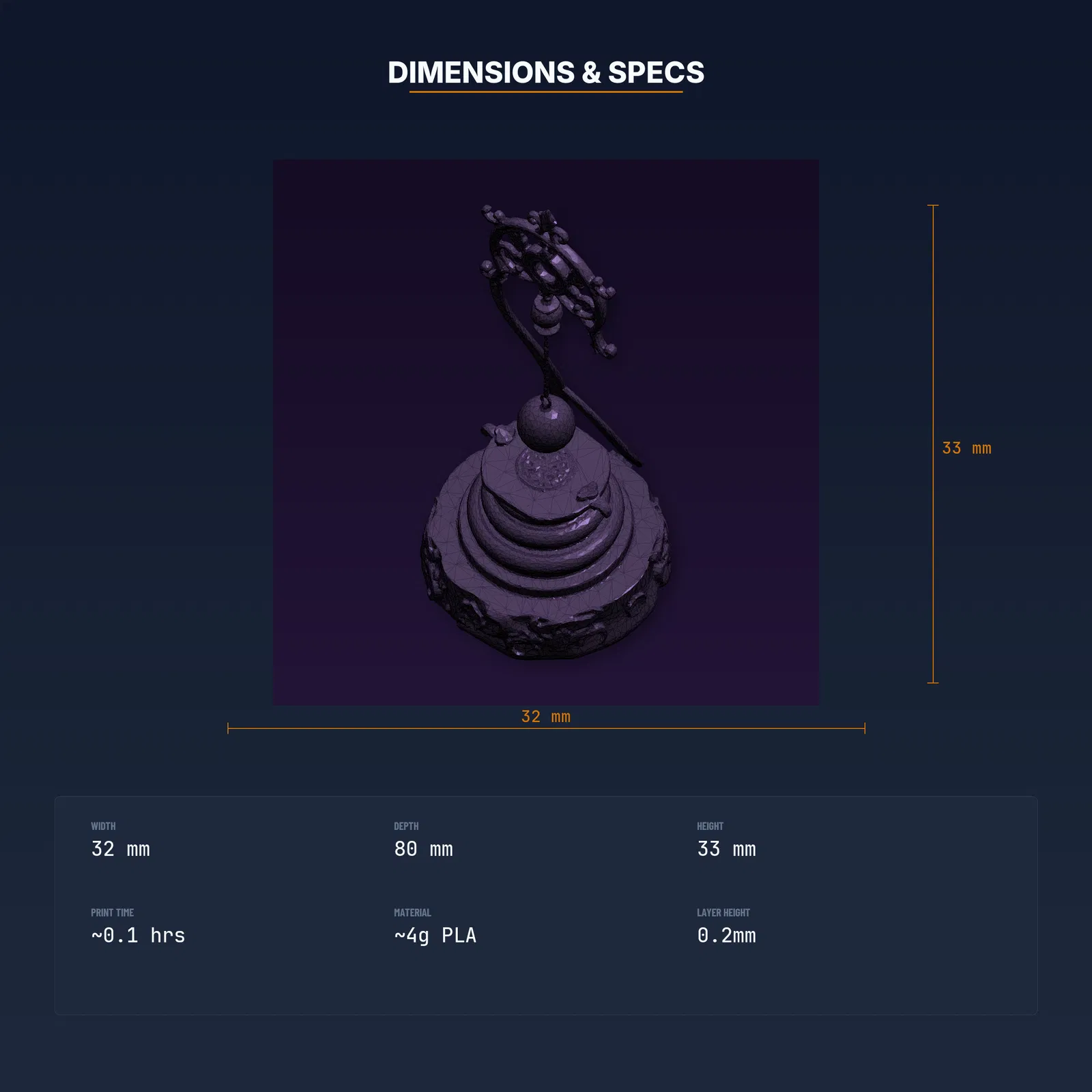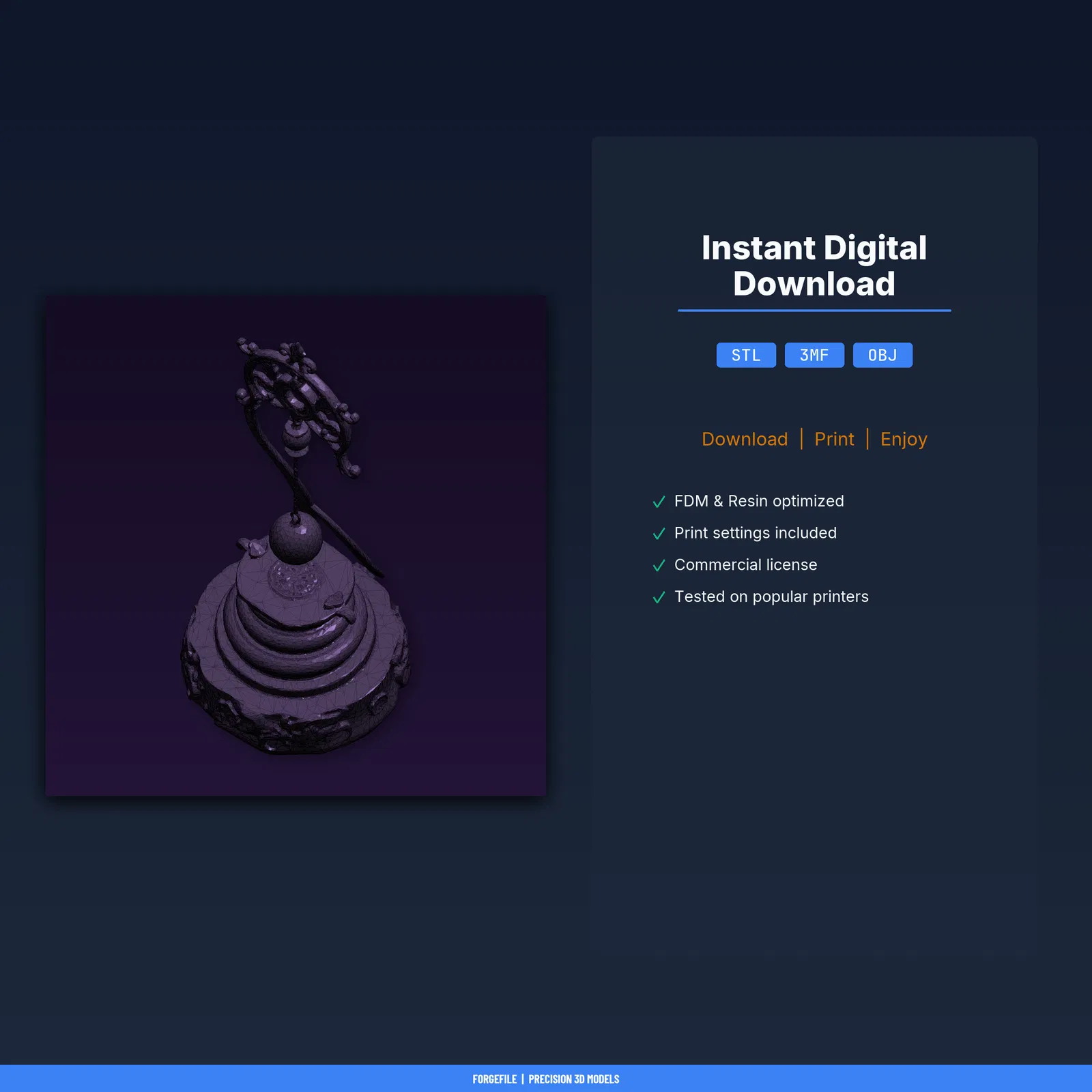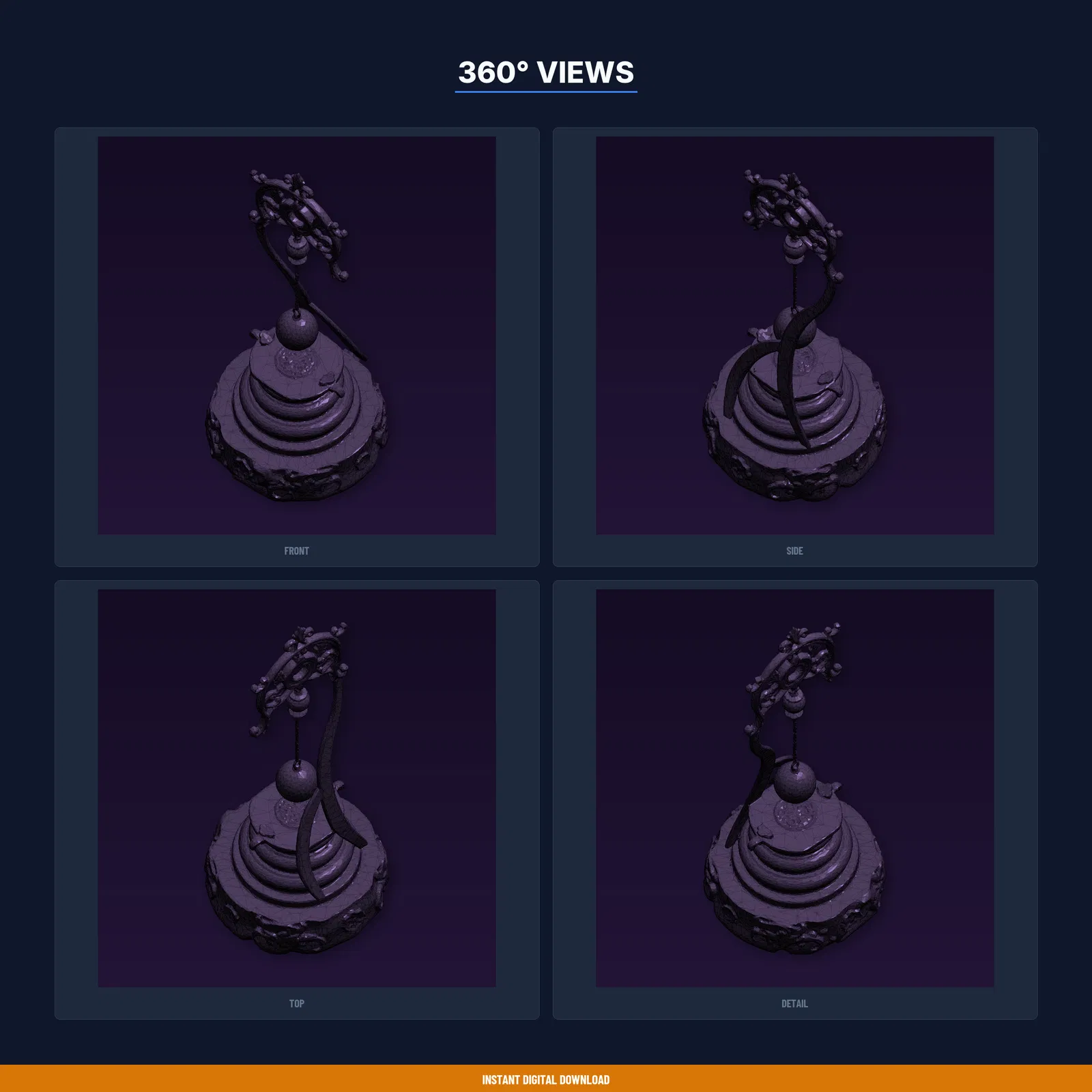 Mẫu giá treo con lắc có móc để treo, đế thiết kế xoắn ốc độc đáo. Gồm STL/3MF/OBJ và hướng dẫn in thông số đã test. Tối ưu cho FDM, khuyến nghị PLA (PETG cũng được).