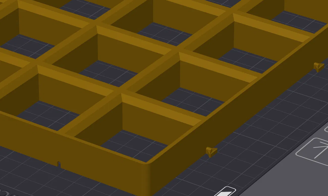 Base plate này có ngàm (tabs) ở hai cạnh và rãnh (slots) ở hai cạnh còn lại, giúp bạn mở rộng khu vực chơi theo từng phần 200mm x 200mm (4x4 blocks).