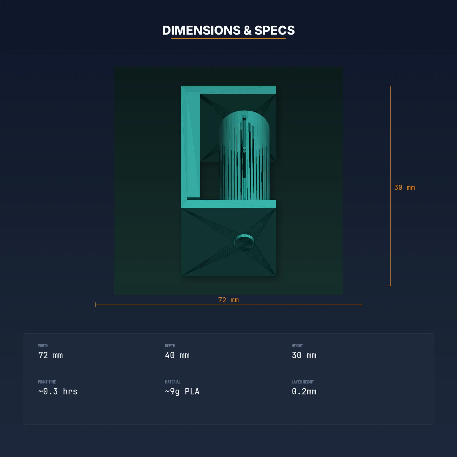 - Lượng vật liệu: ~10g PLA