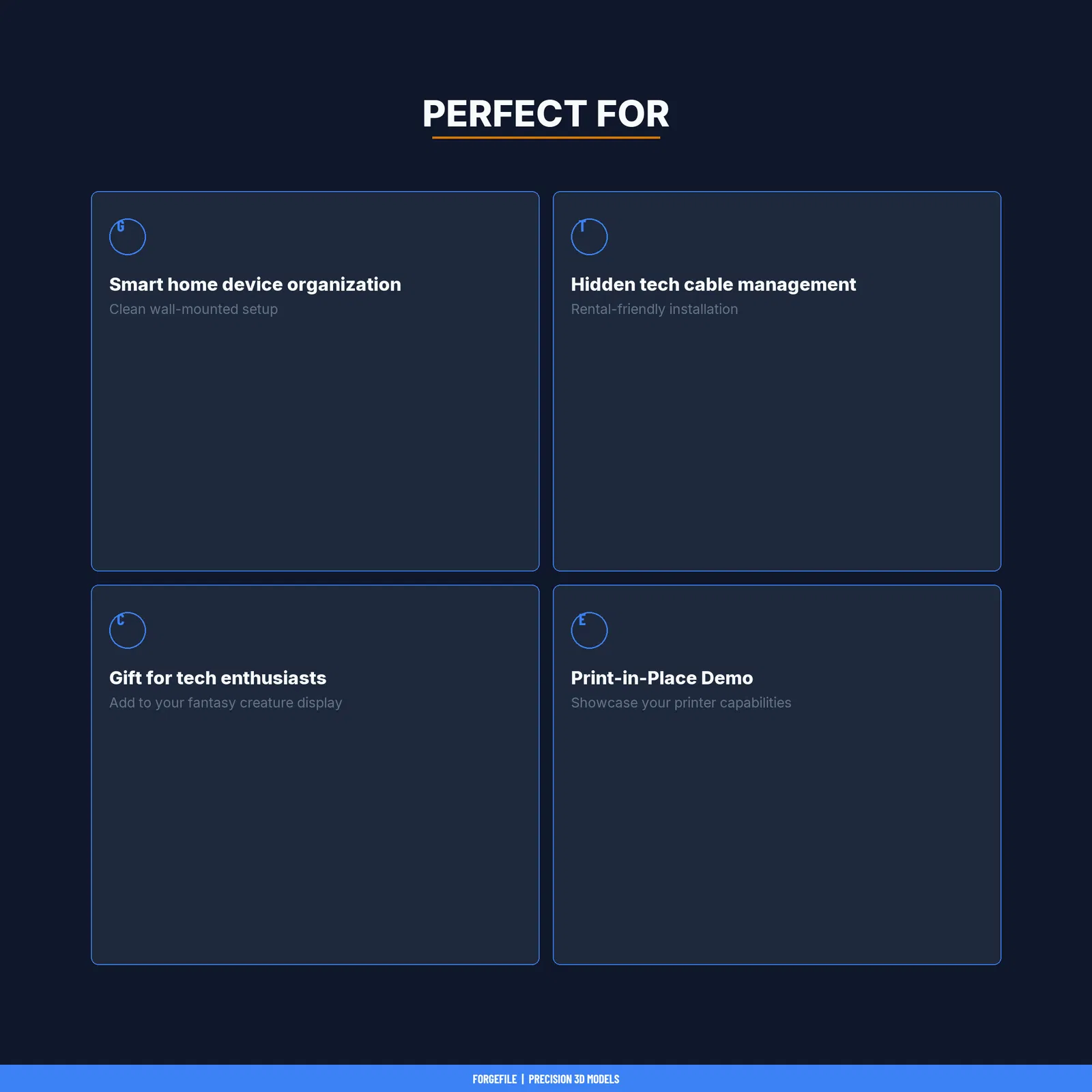 Giữ góc setup gọn gàng với Raven Skull Wall Mount vừa khít, in xong dùng liền. Có sẵn STL/3MF/OBJ và print guide thông số đã test (8+ máy FDM). Khuyến nghị PLA, PETG cũng ổn. Kèm commercial license.