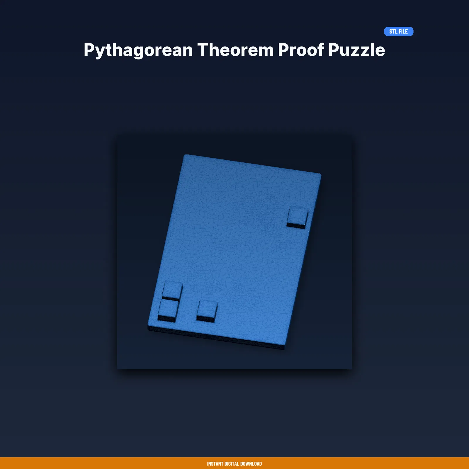 Bộ puzzle giúp minh hoạ chứng minh Định lý Pythagoras theo kiểu trực quan, dễ thao tác. Tải về in ngay, kèm STL/3MF/OBJ và print guide setting đã test trên nhiều máy FDM. Kích thước 76×6.5×50 mm.