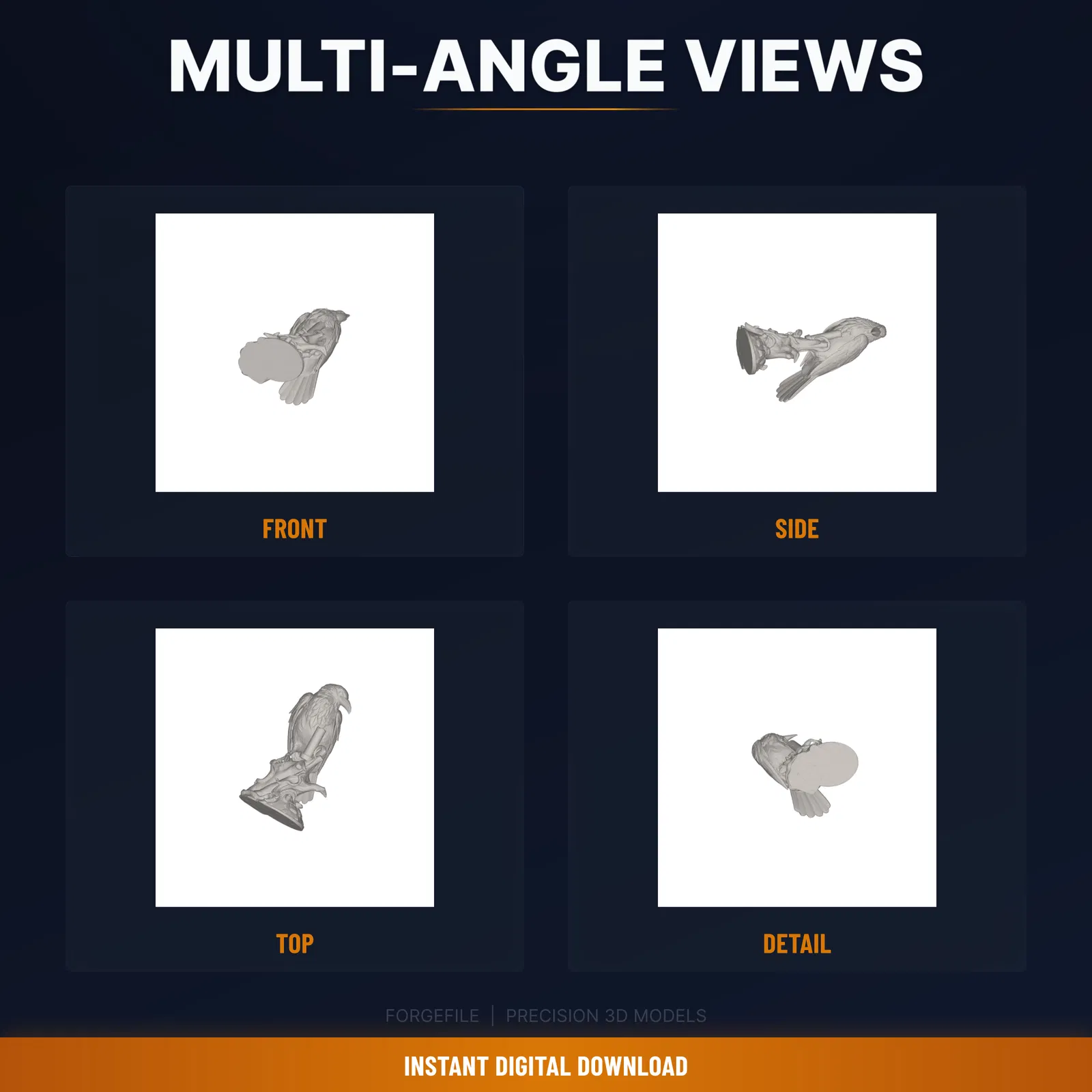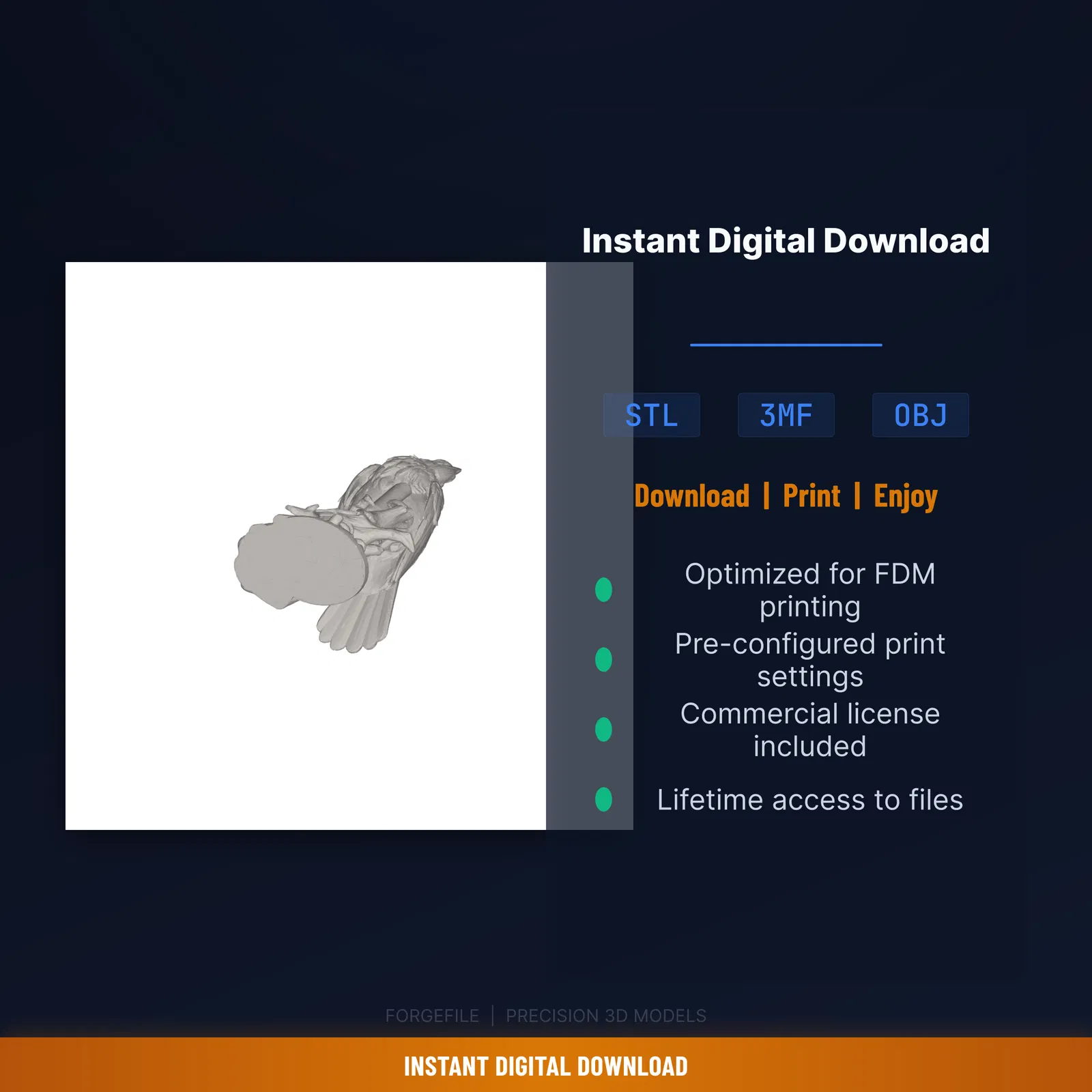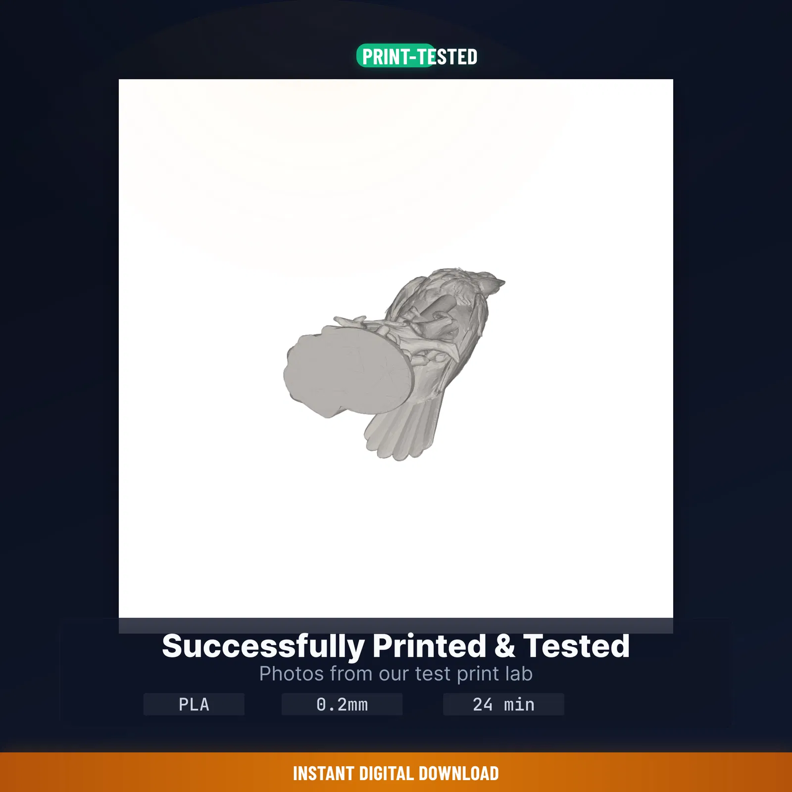 Mẫu quạ đậu trên cành, ngậm cây nến trên mỏ với lông vũ cực chi tiết. Có sẵn STL/3MF/OBJ và hướng dẫn in thông số đã test trên nhiều máy FDM. Tải về là in ngay, phù hợp PLA/PETG.