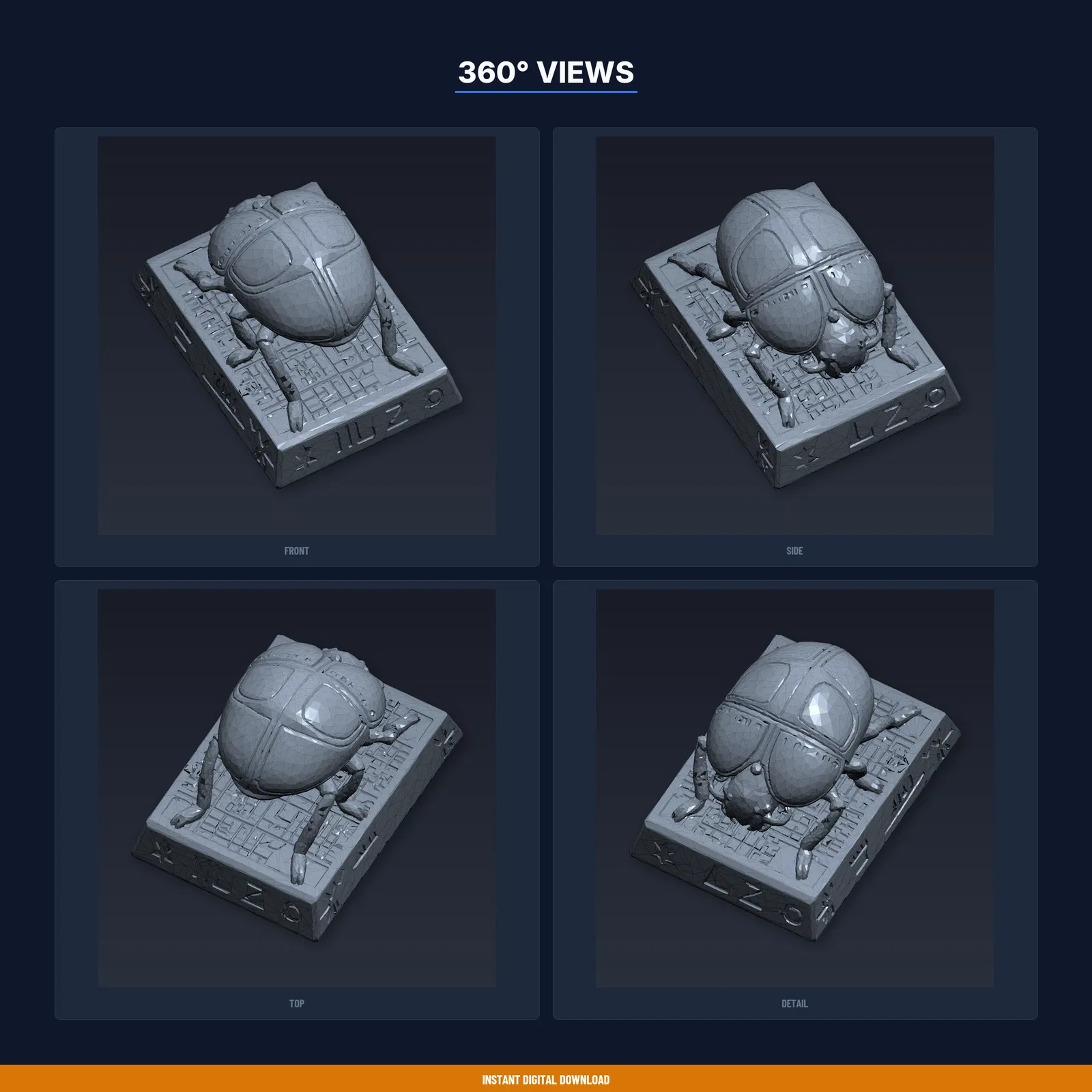 Một mẫu 3D print độc đáo — Sacred Scarab Display. Đã test trên hơn 8 máy in FDM. Tải về và in ngay.