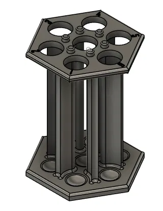 Giá đỡ ống nghiệm dạng lục giác giúp tối ưu không gian tủ, giữ rack ổn định và dễ mang đi. Có đánh số quanh viền để dán nhãn mẫu; phù hợp bố trí thí nghiệm như Beer’s-Lambert. In khuyến nghị infill 15%.
