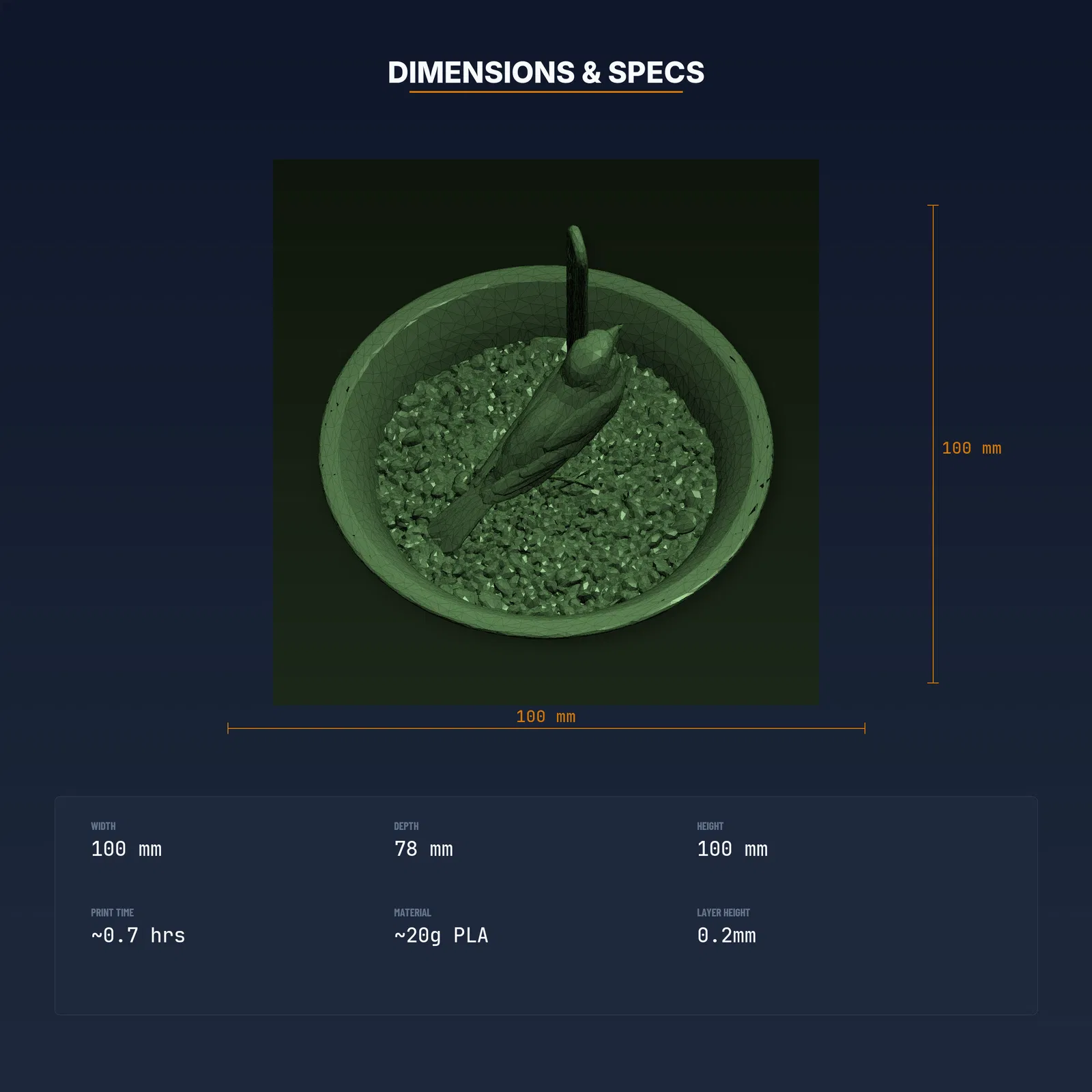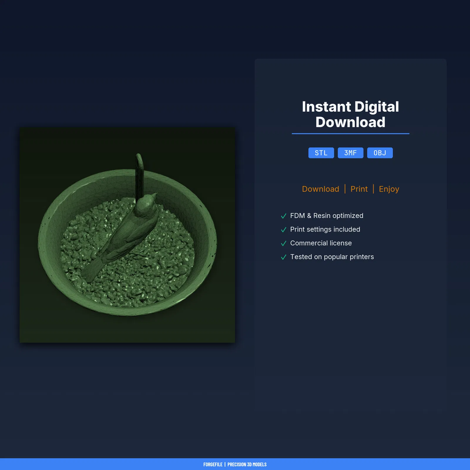 Mẫu Bird Feeder Seed Catcher Tray 3D printable giúp hứng hạt rơi, gắn ngay dưới feeder để giảm thất thoát. Gồm STL/3MF/OBJ và print guide đã test trên nhiều máy FDM. Khuyến nghị PLA (PETG cũng được).