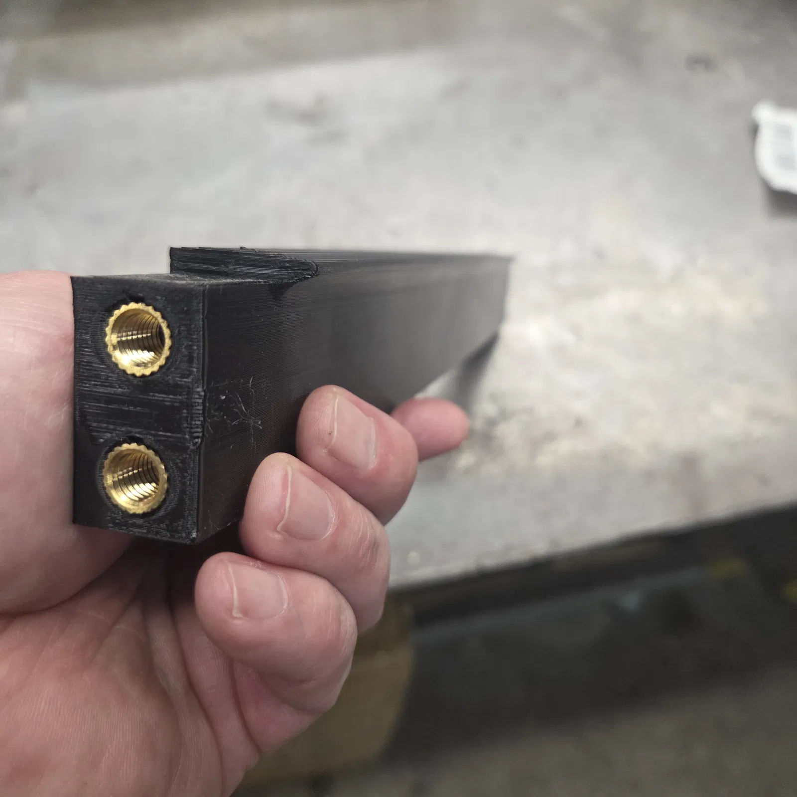 Mình cần một splice bar cho nonwoven unwinder. Chi tiết này cần bề mặt đủ mềm/dẻo nhưng vẫn phải đủ cứng để chịu được tải. Phần này được in bằng TPU 95A để có độ linh hoạt, kết hợp PETG infill để tăng độ cứng. Đây là ứng dụng chạy tốc độ cao và đã hoạt động ổn khoảng một năm.