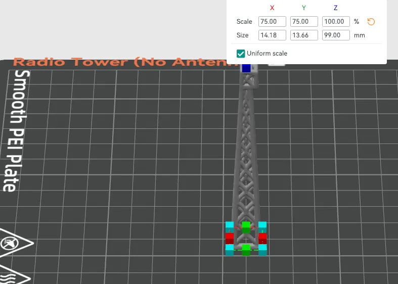 Thêm mô hình Tháp Radio tỉ lệ N chân thực vào bộ sưu tập của bạn! Được thiết kế với chi tiết cấu trúc lưới tinh xảo, không có ăng-ten, mô hình này hoàn hảo cho các dự án mô hình đường sắt, cảnh quan thu nhỏ hoặc trang trí. Dễ dàng tùy chỉnh kích thước khi in 3D, phù hợp với mọi không gian. Chất liệu PLA hoặc ABS được khuyến nghị, với lớp nền 0.1-0.2mm cho kết quả tốt nhất. Một điểm nhấn độc đáo cho người đam mê mô hình và kỹ thuật.