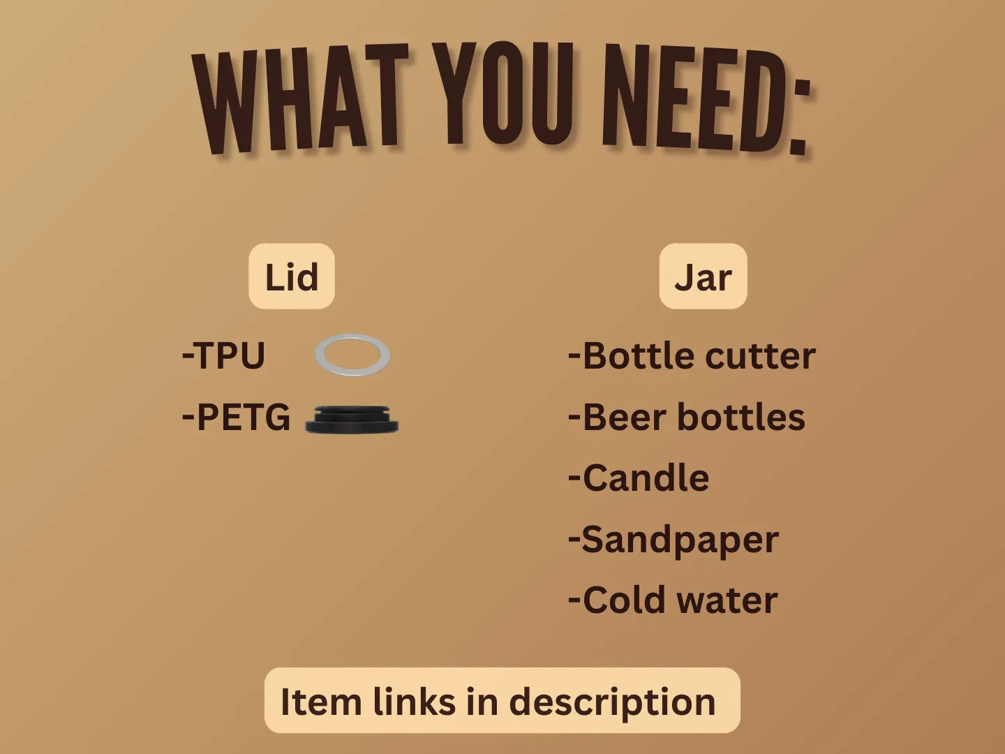 Bộ Beer Bottle Jars giúp bạn biến chai bia thủy tinh màu hổ phách thành hũ đựng gia vị/đồ khô. Kèm hướng dẫn cắt chai an toàn và thông số in nắp PETG + gioăng TPU để kín, dễ in và dễ làm tại nhà.