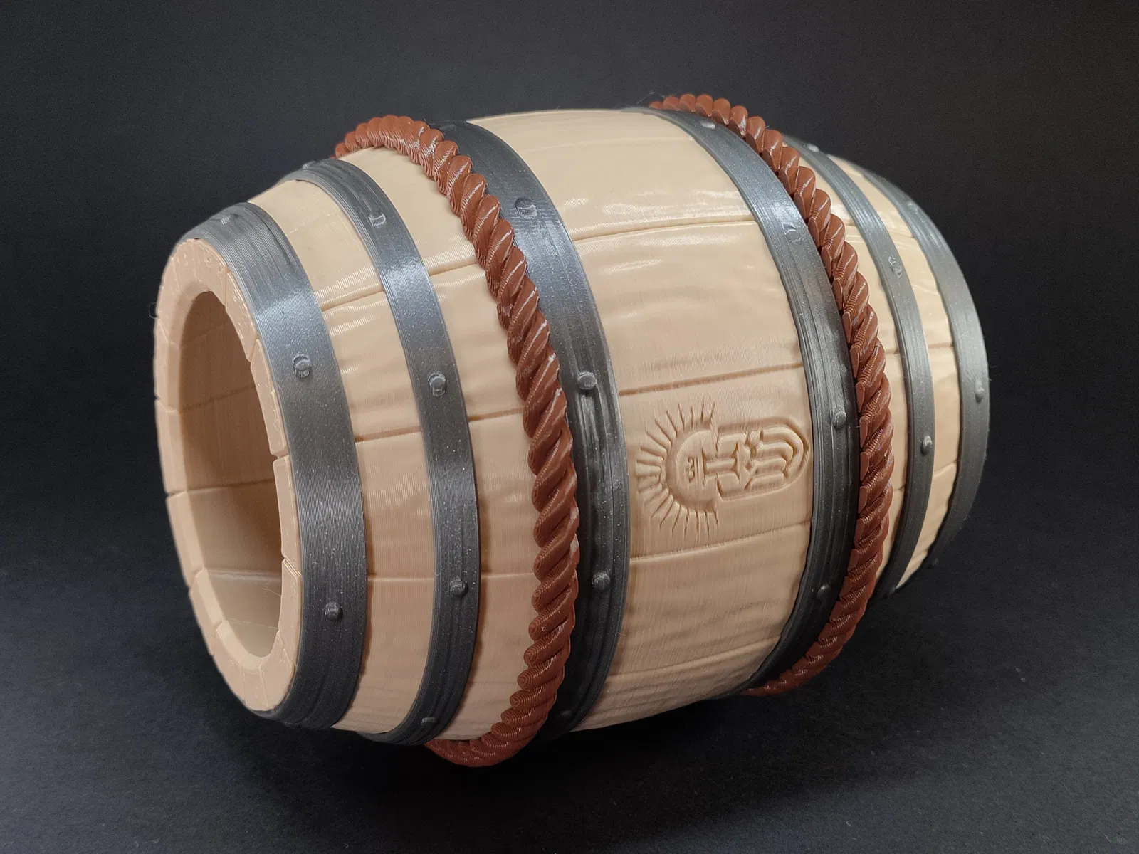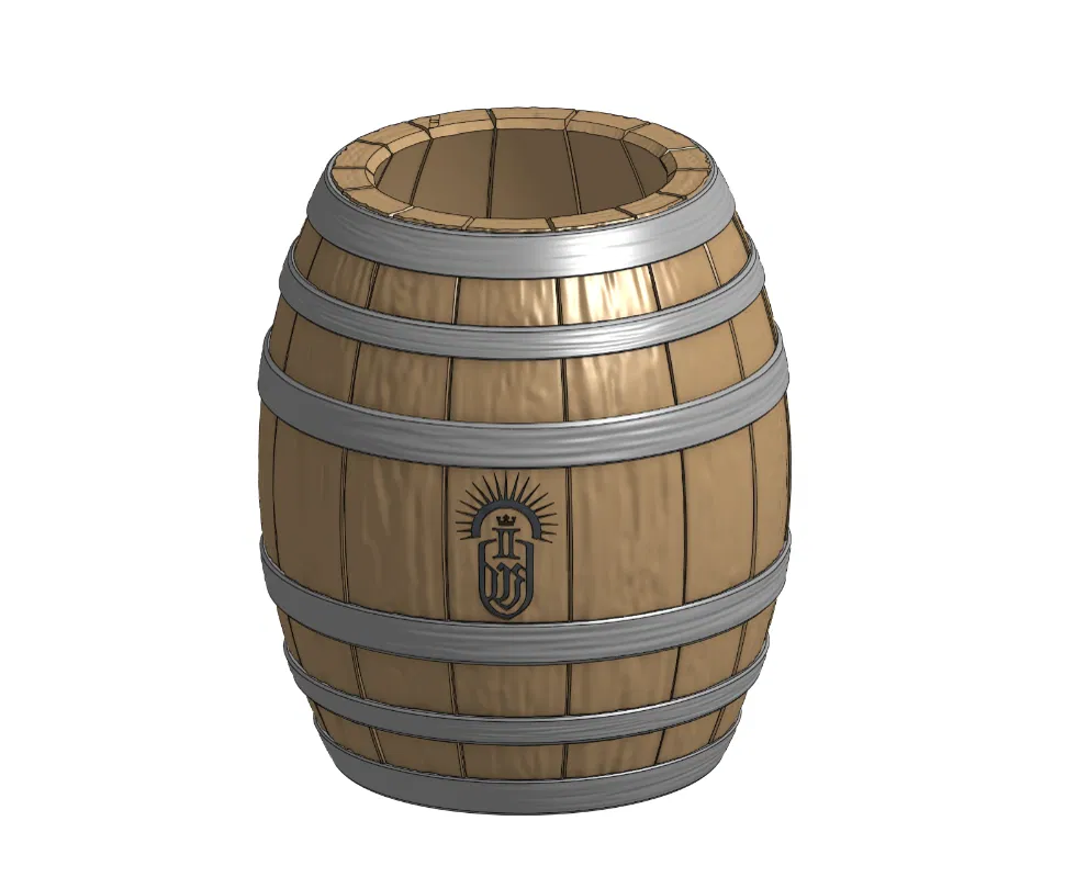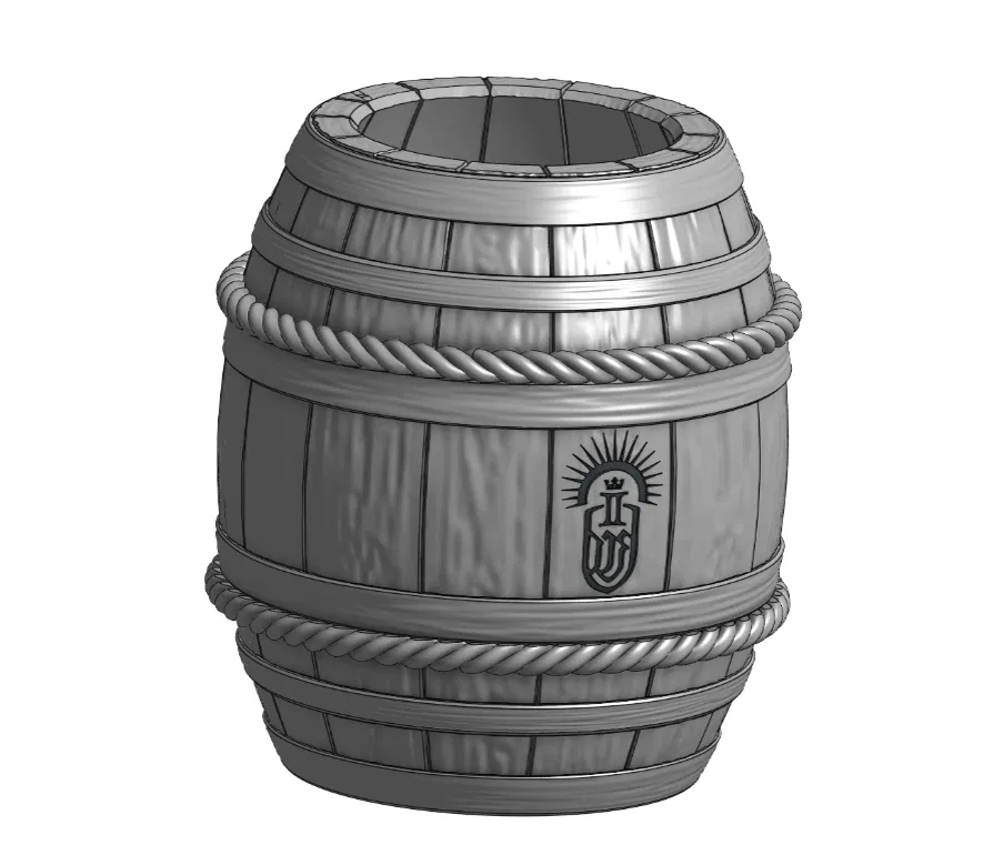 Model thùng gỗ cũ kiểu rèn theo chủ đề Philips OneBlade, dùng làm stand. Có nhiều phiên bản: nguyên khối để sơn, bản tách rời phần forging và dây thừng, và bản không có dây thừng.
