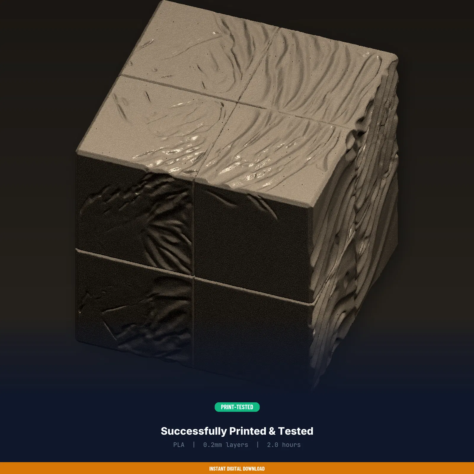 Mẫu Geometric Wave Modular Tile độc đáo, tải về là in ngay. Có sẵn STL/3MF/OBJ kèm print guide thông số đã test (8+ máy FDM). Kích thước 5×5×5 mm, gợi ý PLA/PETG, có license thương mại.