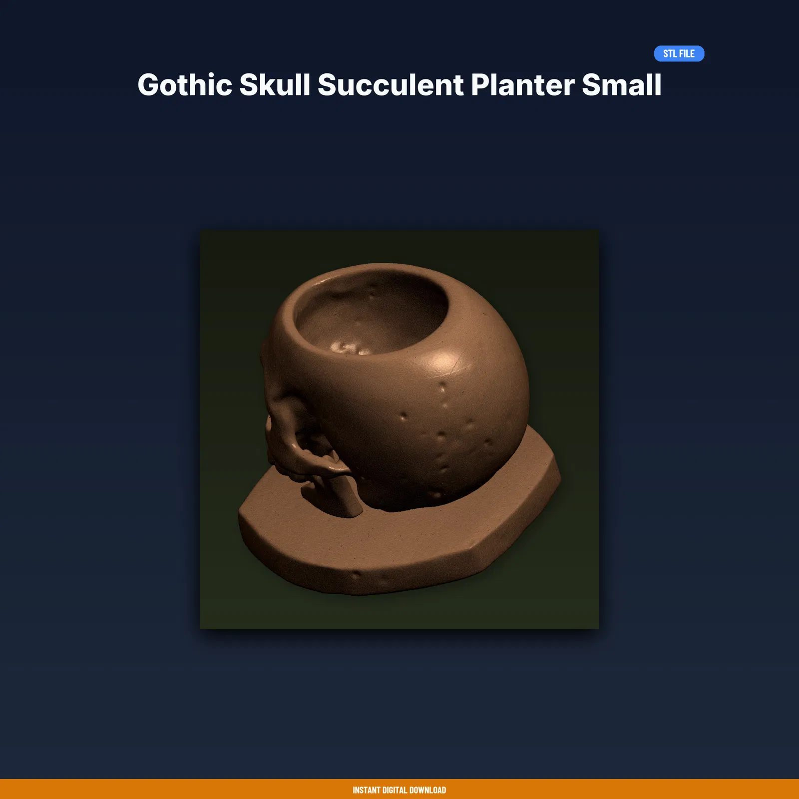 Thêm chút xanh cho góc nhà với chậu sen đá đầu lâu phong cách Gothic size nhỏ. Tải về in liền, kèm STL/3MF/OBJ và hướng dẫn in đã test. Kích thước 97.8×99.7×100mm, khuyên dùng PLA.