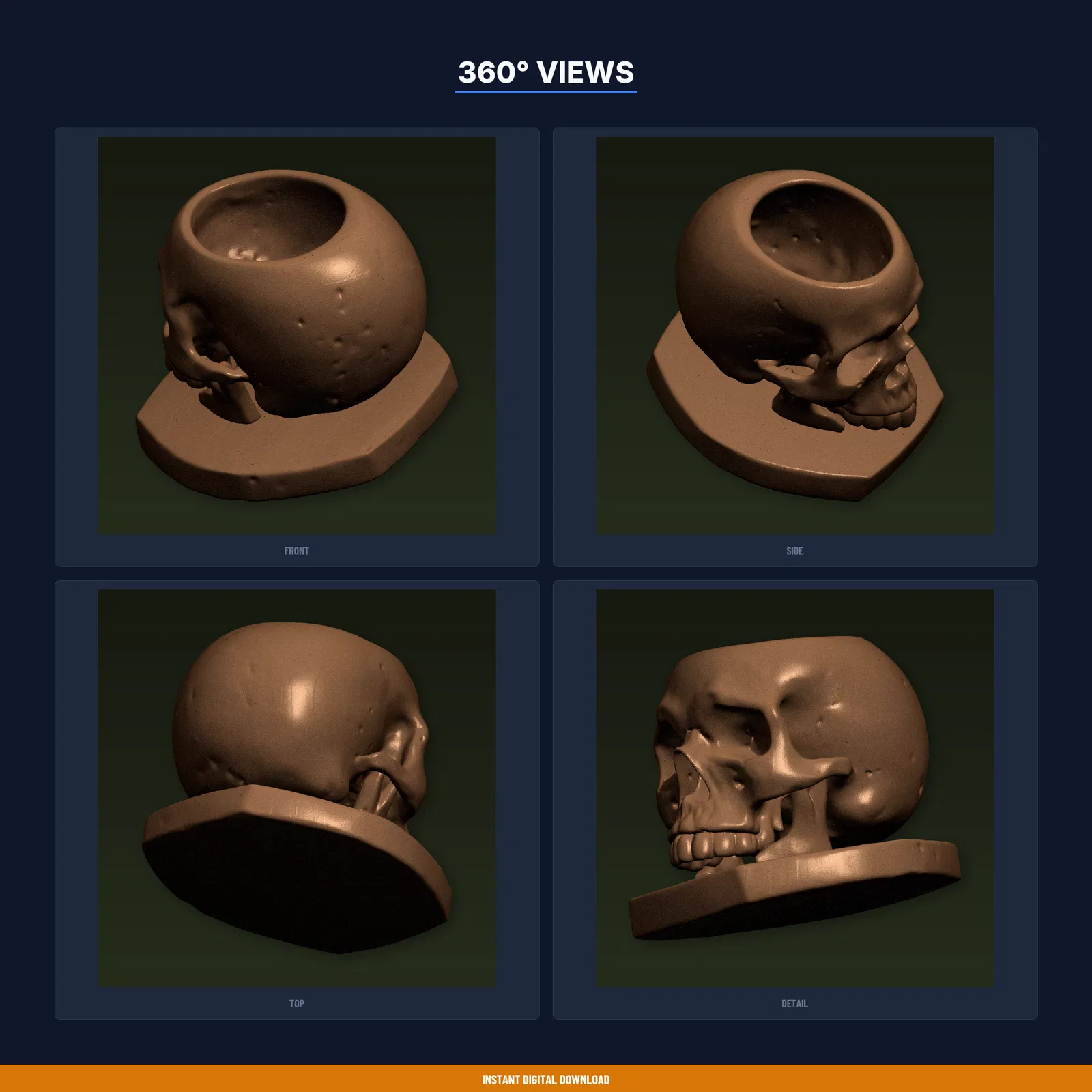 Chậu Sen Đá Đầu Lâu Gothic Size Nhỏ – File STL 3D Printable