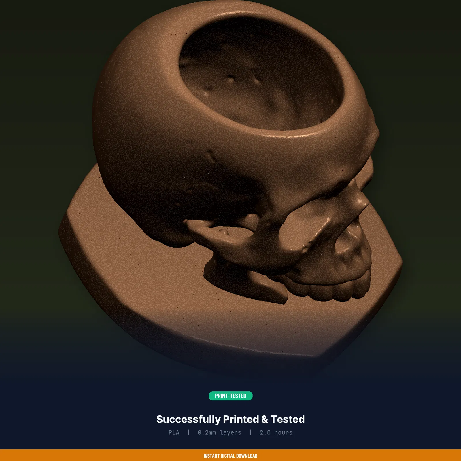 Thêm chút mảng xanh cho không gian của bạn với Gothic Skull Succulent Planter Small. Mẫu đã được test trên hơn 8 máy in FDM. Tải về và in liền.