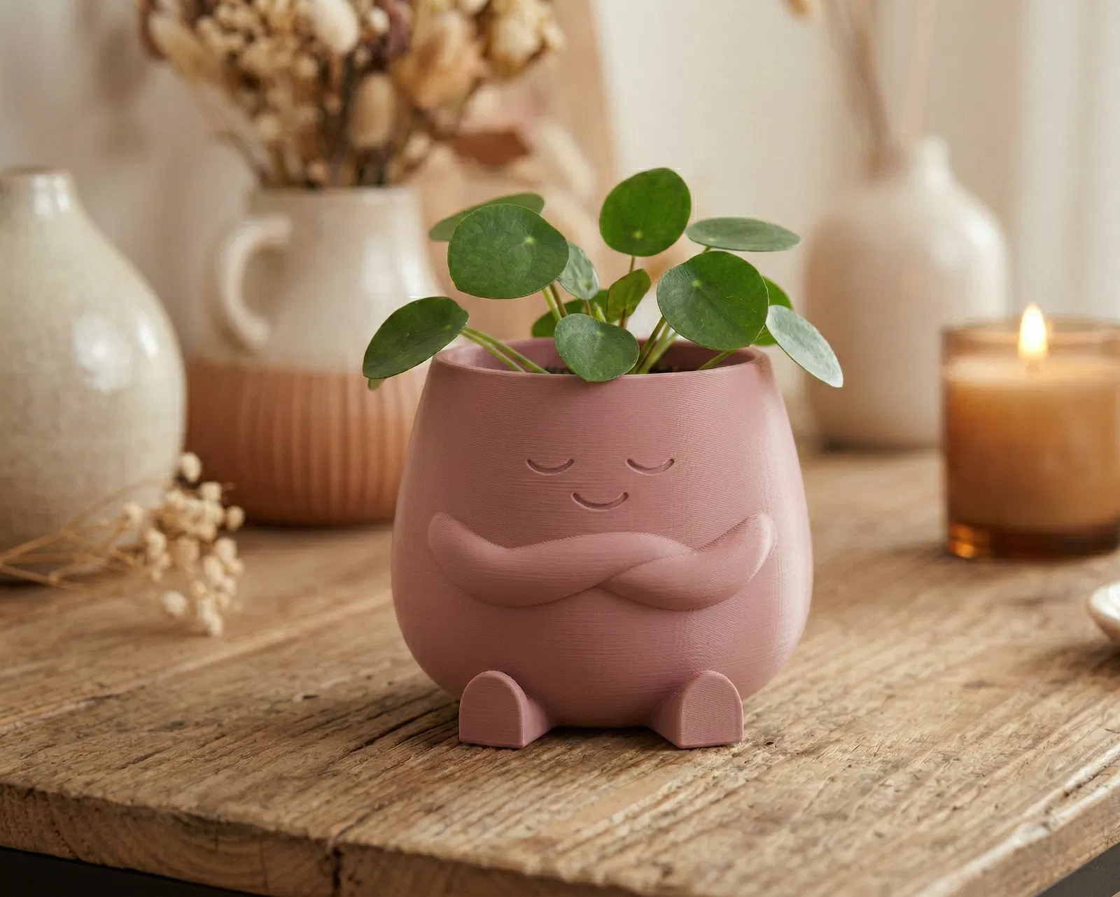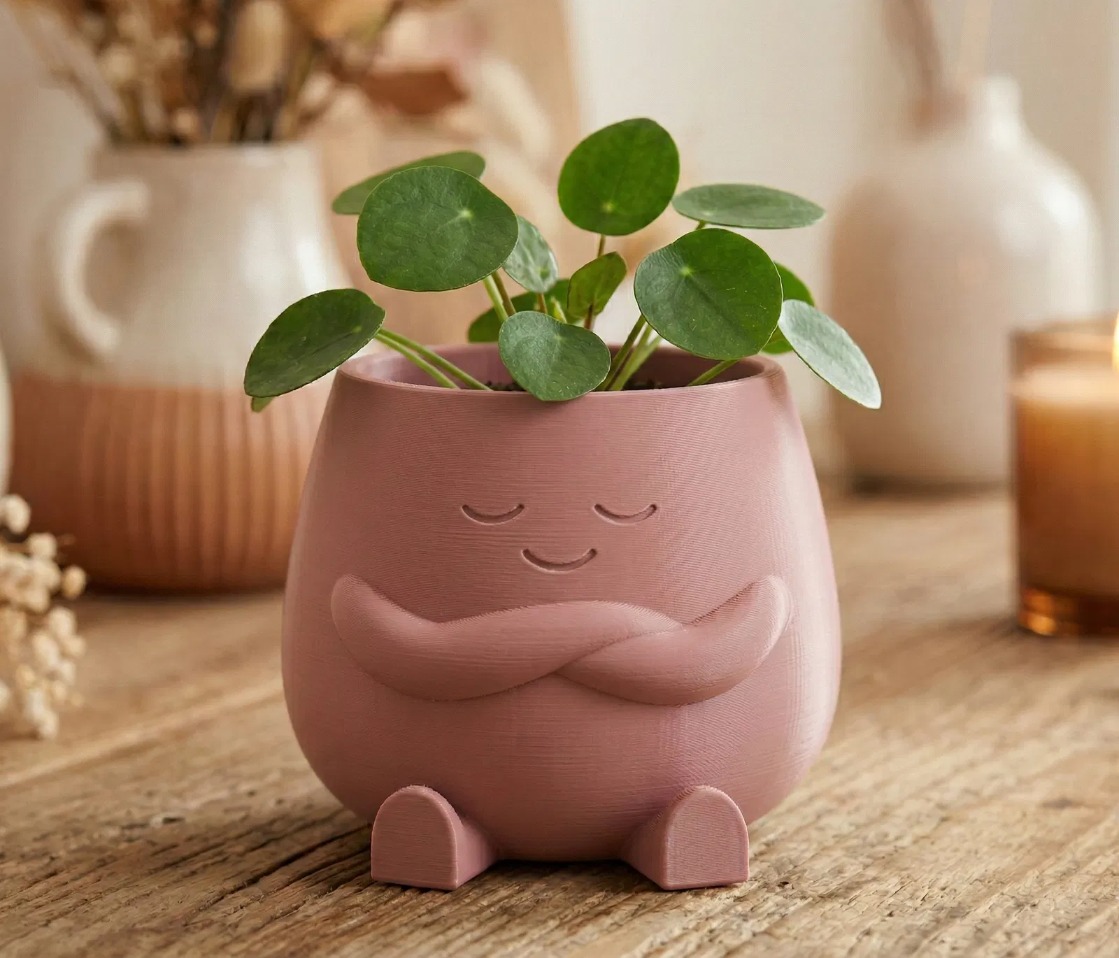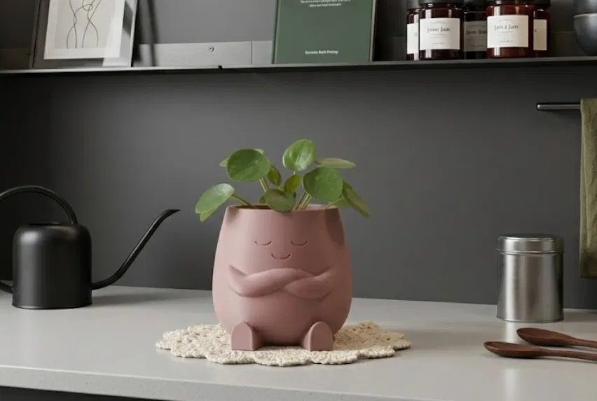Mình thiết kế The Calm Pot vì mình muốn một món decor không chỉ “để đó cho đẹp”. Nhân vật nhỏ này hướng tới sự chánh niệm và cảm giác an yên. Mình đã dành khá nhiều thời gian để chỉnh dáng “ôm” và nụ cười nhẹ, để nhìn góc nào cũng hài hòa. Nó không chỉ là một cái chậu; mà còn như một lời nhắc nhỏ để bạn giữ bình tĩnh và vững vàng suốt cả ngày. 🌿