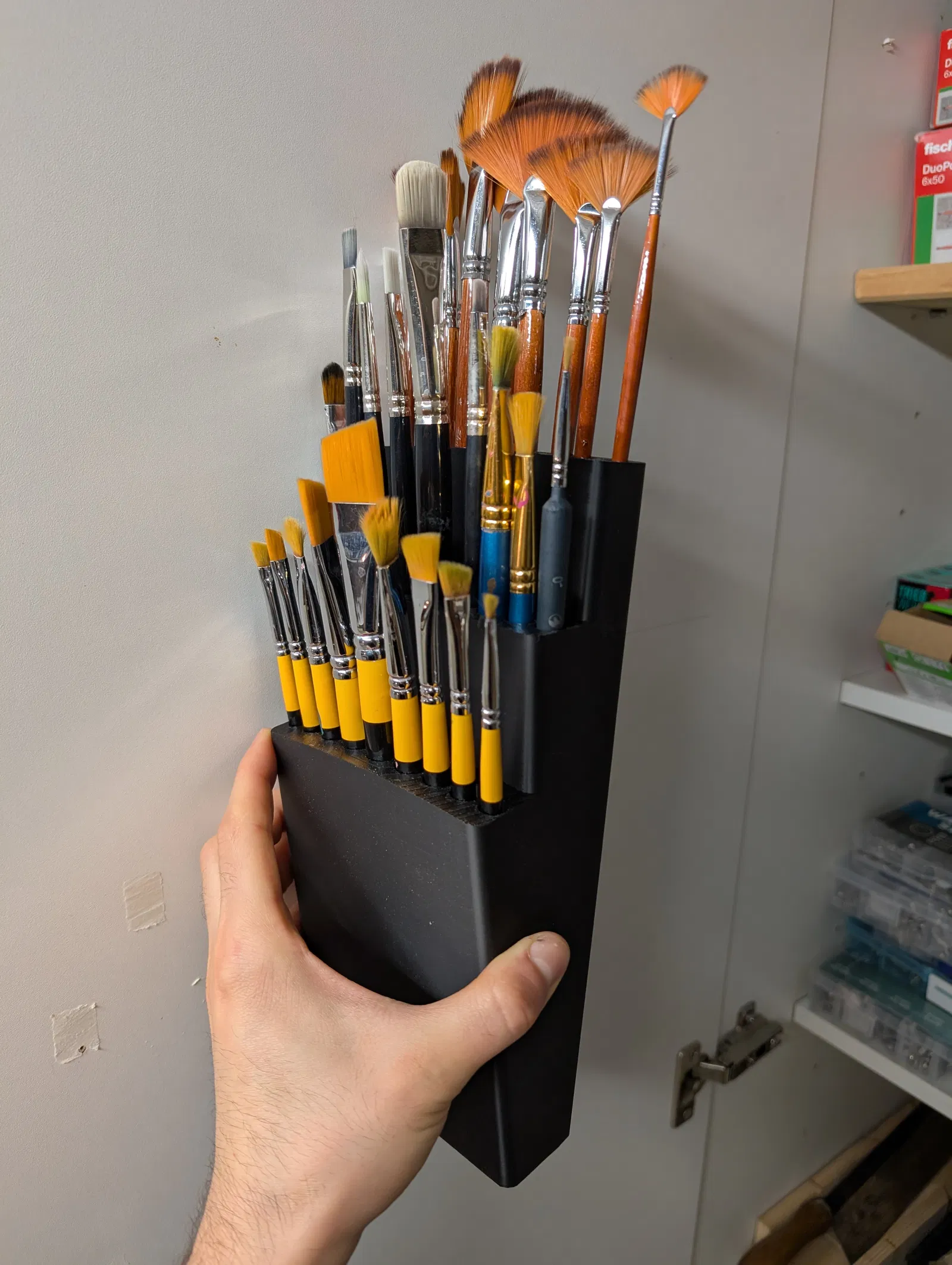 Giải pháp hoàn hảo cho không gian vẽ của bạn! Chiếc kệ treo cọ vẽ đa năng này giúp bạn sắp xếp gọn gàng lên đến 27 cây cọ, chia thành 3 hàng tiện lợi. Thiết kế treo tường thông minh không chỉ tiết kiệm không gian mà còn bảo vệ đầu cọ khỏi hư hại. Dễ dàng lắp đặt chỉ với 2 ốc vít, phù hợp với mọi họa sĩ, từ chuyên nghiệp đến người mới bắt đầu. Chất liệu in 3D bền đẹp, là công cụ không thể thiếu để giữ cho khu vực làm việc của bạn luôn ngăn nắp và đầy cảm hứng sáng tạo.