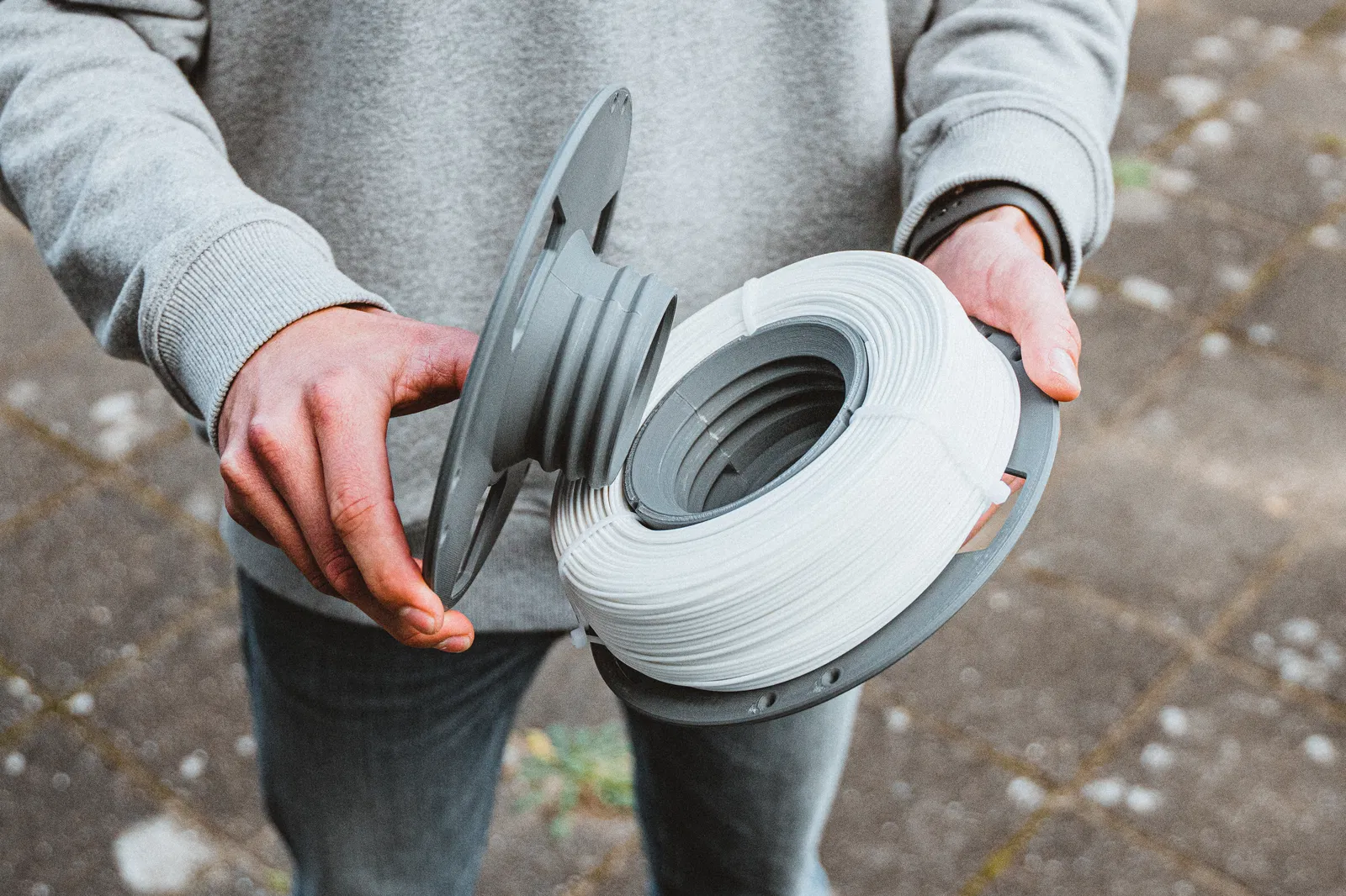 ReFill được sản xuất để dùng với master spool tái sử dụng giống như mẫu này. Loại filament này giúp giảm đáng kể “carbon footprint” vì rác thải bao bì được cắt giảm xuống mức tối thiểu.