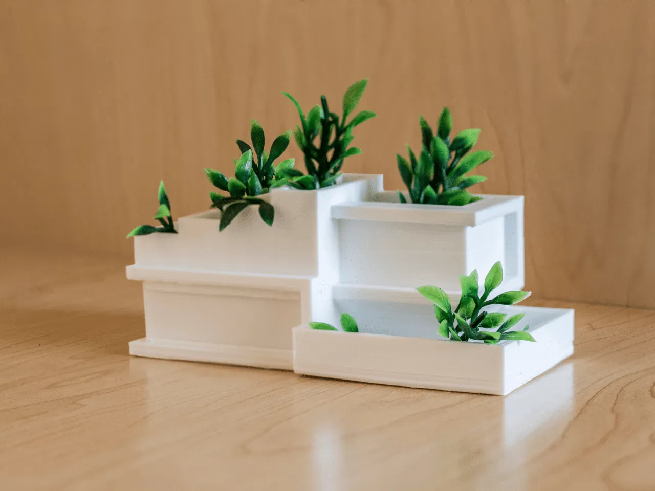 Lấy cảm hứng từ xu hướng kiến trúc hiện đại, chậu trồng này kết hợp thiết kế đương đại với thiên nhiên, cho phép bạn đặt những chậu succulent nhỏ xinh hoặc microgreens trong một “ngôi nhà” tối giản, mang hơi hướng tương lai. Kết cấu nhiều tầng có đường nét gọn gàng, hình khối hình học và nhiều mức trồng, giúp bạn thêm chút sức sống cho góc làm việc trong nhà hoặc tạo điểm nhấn đô thị cho khu vườn ngoài trời. Thiết kế minimalist khiến nó dễ phối với nhiều kiểu decor, và cũng dễ scale để in ở kích thước lớn hơn.