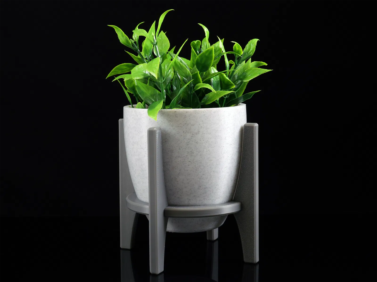 Mẫu chậu cây Modern Elevated Planter phong cách hiện đại, gọn và sang. In dễ, không cần supports. Có thêm bản nhỏ hơn để giữ tolerances khi scale. Lắp ráp bằng cách dán 4 chân vào vòng; phần cup đặt tự do.