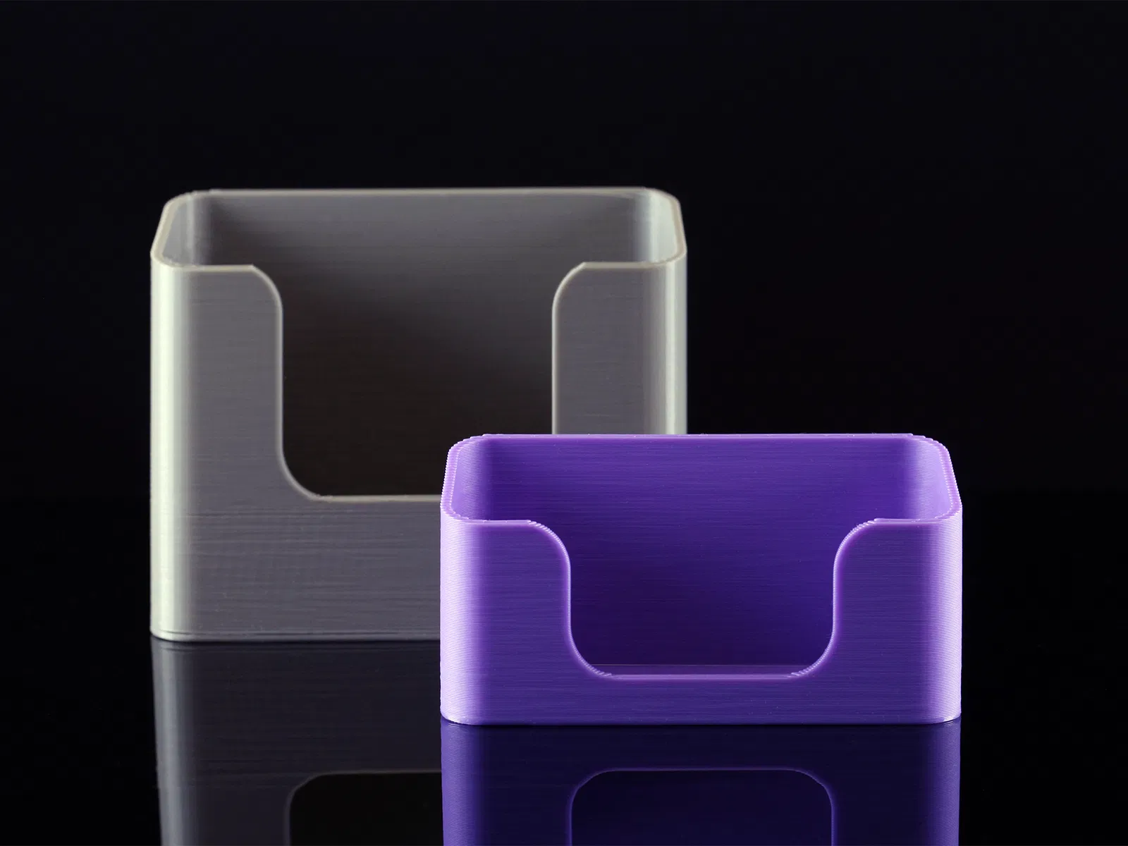 Bộ 2 mẫu holder đồng bộ để trưng bày brochure và business card gọn gàng trên bàn làm việc. Thiết kế dễ in, không cần supports, phù hợp làm desktop organizer cho văn phòng hoặc ở nhà.