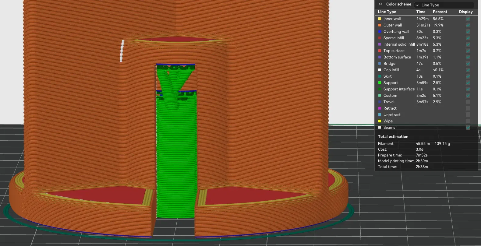 • 100% độ đặc từ 6.3mm đến 32.4mm (sử dụng bộ điều chỉnh phạm vi chiều cao) Lưu ý rằng việc sử dụng đầu phun 0.6 và 4 vòng shell/tường sẽ dẫn đến việc “cánh” trở nên đặc. Nếu cài đặt của bạn dẫn đến việc độ đặc xuất hiện trong các cánh, thì hãy làm cho chúng đặc luôn. Bạn có thể xem xét việc in toàn bộ bộ phận với 100% độ đặc nếu bạn phải đặt nó trên mặt đất cứng hoặc thô.