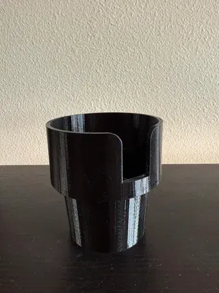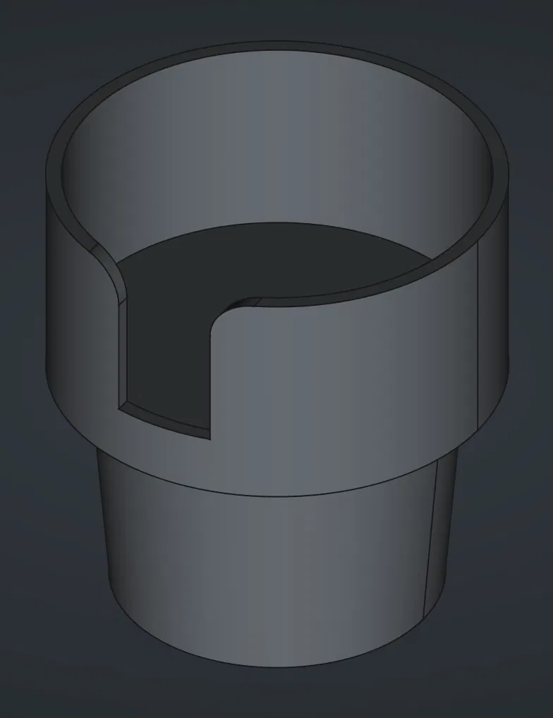 Phần cắm xuống hộc để ly có đường kính 80mm ở đáy, 90mm ở miệng trên, và cao 60mm. Kích thước này vừa rất ổn với hộc để ly trên vài chiếc xe của mình. Nếu bạn cần kích thước khác, mình có thể thêm một phiên bản khác của model với thông số khác, nhưng bạn cần cho mình biết cụ thể là bao nhiêu.