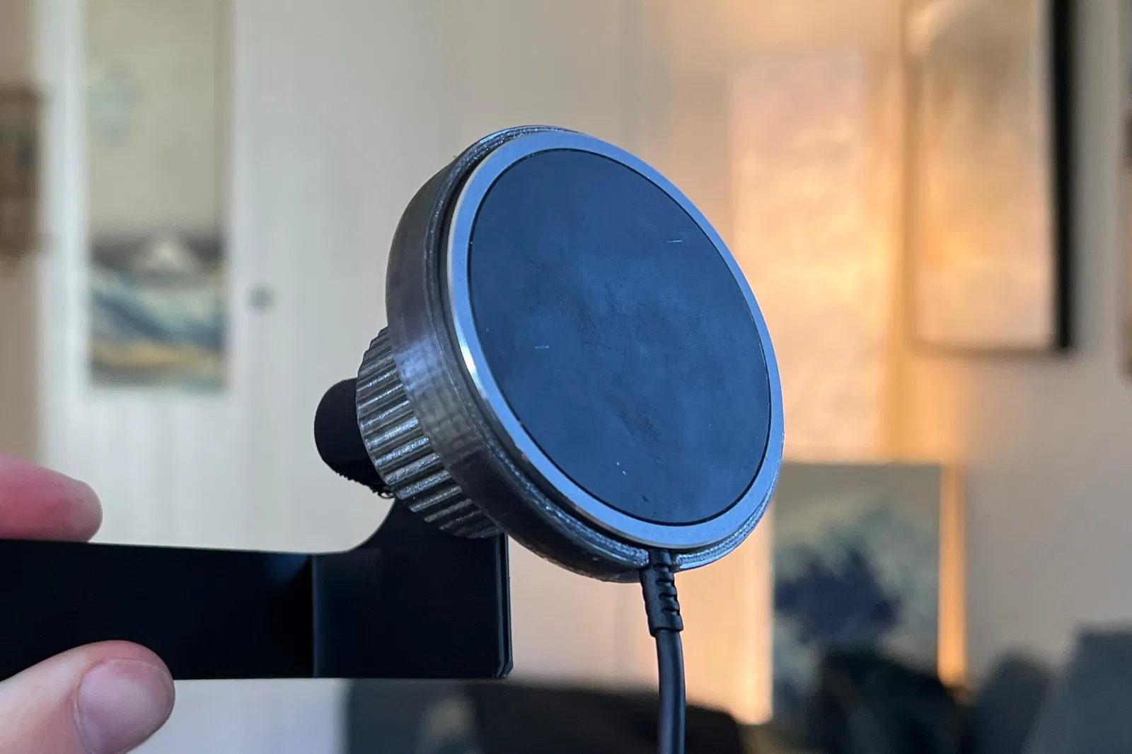 Mẫu này tương tự bản gốc mà nó remix, nhưng cái magsafe puck được đặt cùng trục với phần ren của khớp bi (ball joint) 17mm. Mình đang dùng với một sạc Magsafe bên thứ ba có nam châm mạnh hơn sạc Apple, nhưng ngoài ra kích thước thì y hệt.