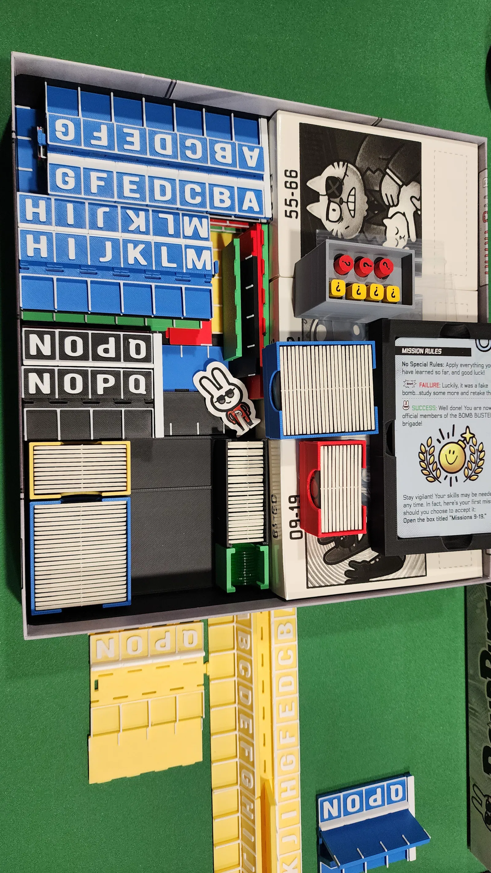 Bộ wire rack cho Bomb Busters có chữ cái để gọi đúng vị trí dây, lắp được nhiều kích cỡ theo số người chơi và có khe cắm card che tile. Kèm storage insert cho base game (không hỗ trợ card bọc sleeve).