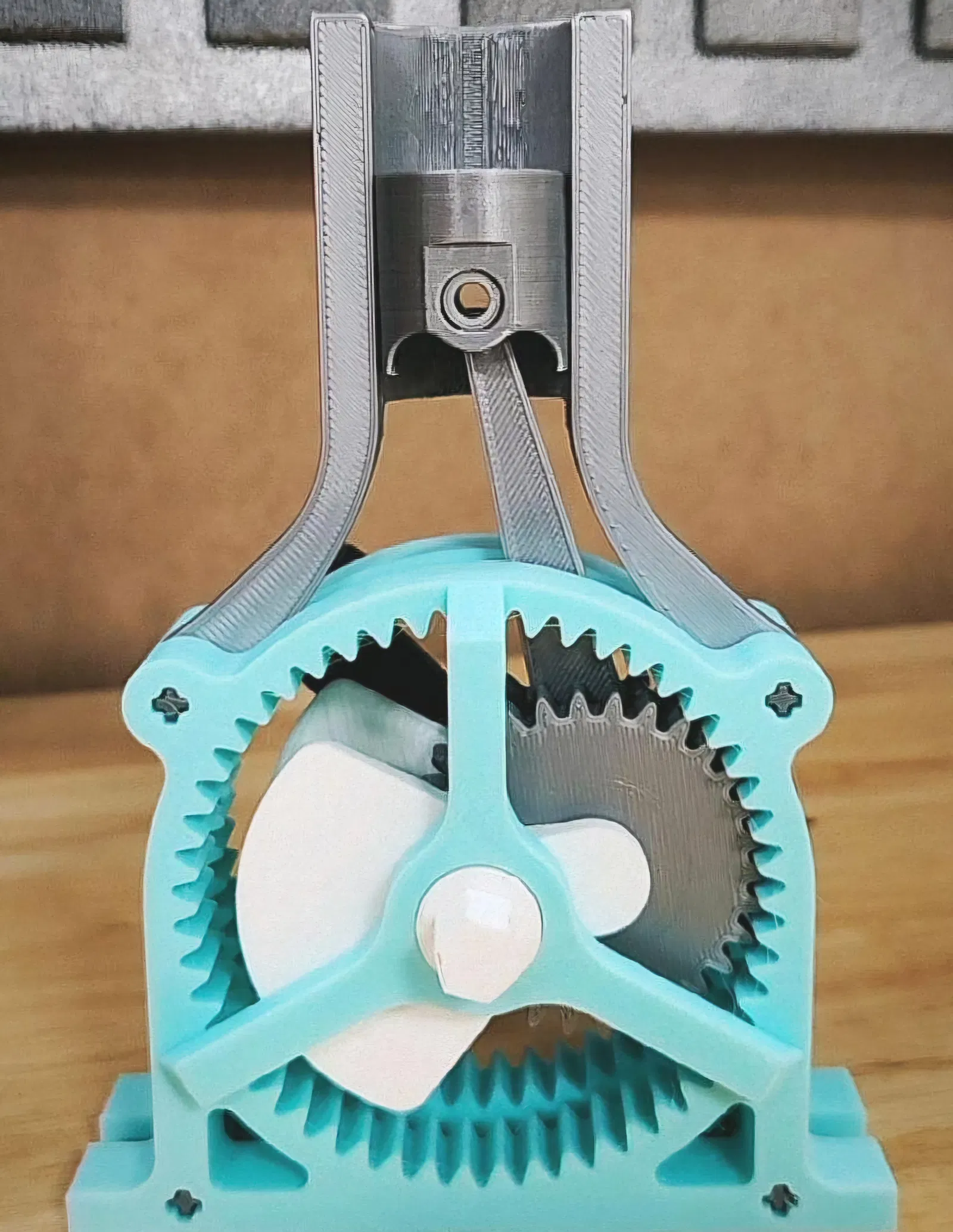 Bản proof of concept mô phỏng bằng sáng chế động cơ đốt trong 6 kỳ của Porsche (2024). Có cutaway 1 xi-lanh để quan sát chu trình 6 stroke, kèm chuẩn trục Lego axle để ghép cụm.