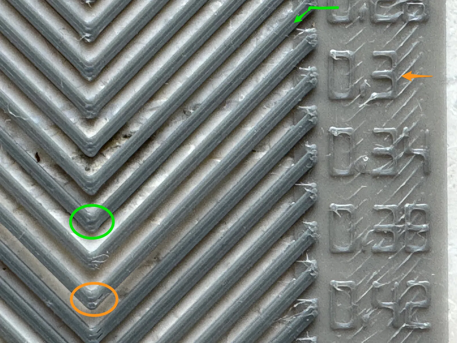 Nhìn hình thì bạn sẽ thấy góc là chỗ cần tập trung quan sát. Nếu có khe hở (gaps) thì factor đang quá cao; mục tiêu là tìm giá trị đầu tiên không còn khe hở và góc vẫn sắc. Mình dùng 0.29 làm giá trị rút ra từ bản in này.