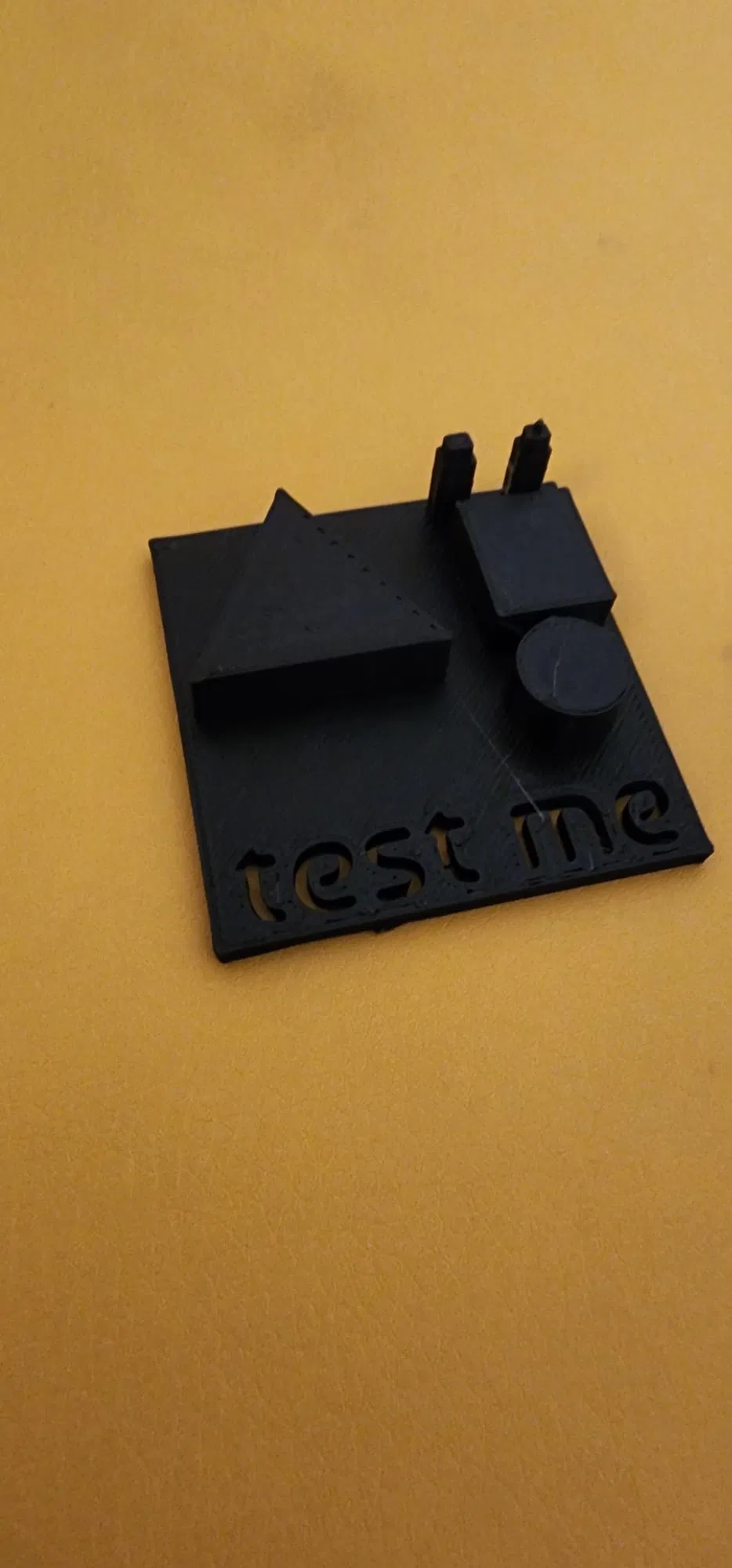 Mô hình "Test Me" không chỉ là một bài test thông thường, nó còn là một vật trang trí độc đáo trên bàn làm việc của bạn. Với dòng chữ "test me" được khắc nổi, nó như một lời mời gọi, một lời nhắc nhở vui vẻ về niềm đam mê sáng tạo của bạn với công nghệ in 3D. Đây là một công cụ hữu ích để đảm bảo mọi bản in tiếp theo của bạn đều đạt chất lượng tốt nhất.