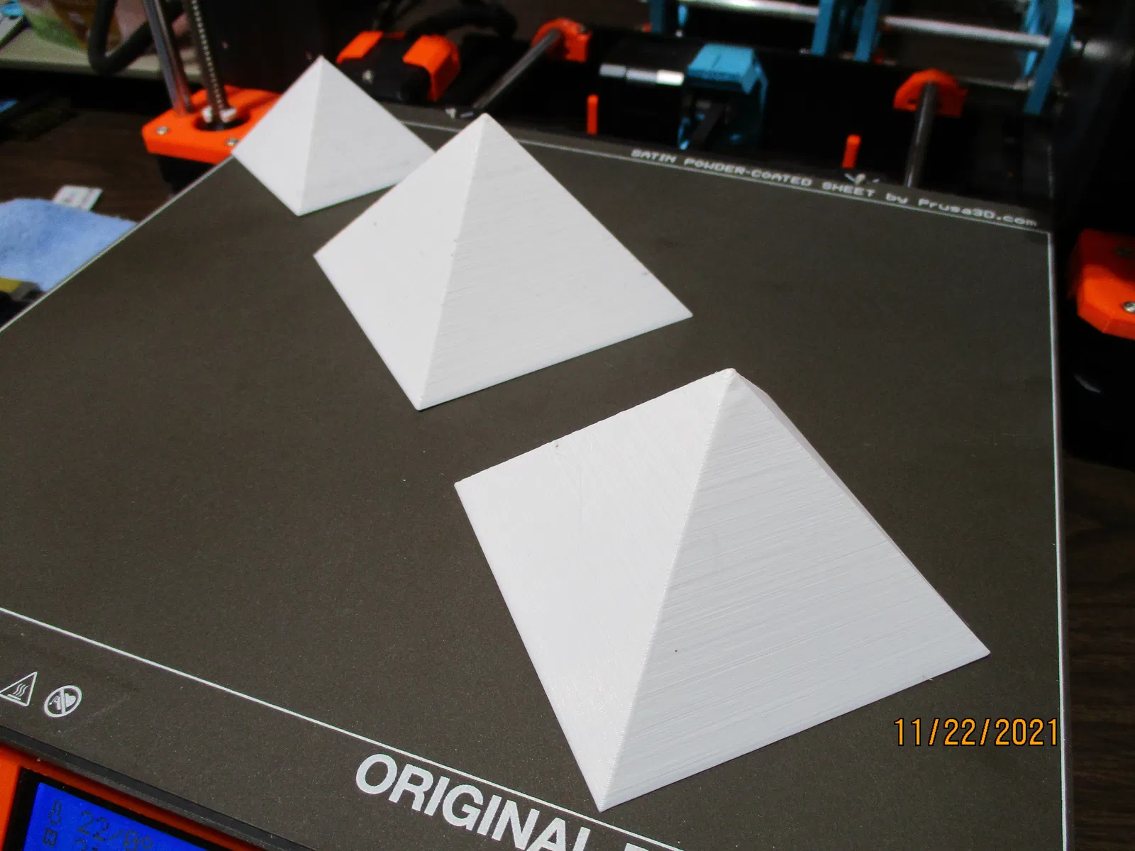 Mẫu mô hình tỉ lệ Đại Kim Tự Tháp Giza. File STL có thể scale lớn/nhỏ trong PrusaSlicer. Tham khảo thời gian in theo tỉ lệ, gợi ý layer height 0,2mm và infill 0%; PETG hoặc PLA đều phù hợp.