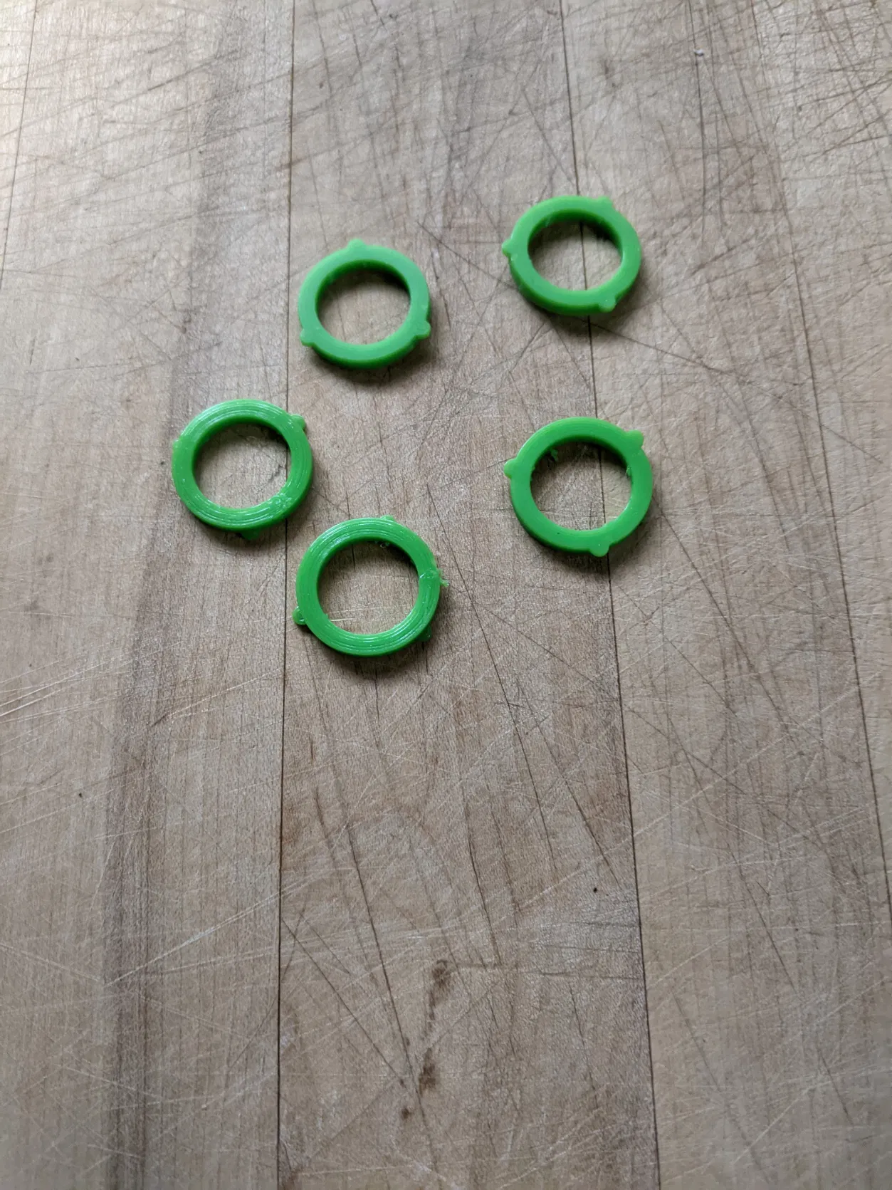 Mẫu “my first TPU” siêu dễ: bộ 6 vòng đệm cho đầu ống tưới, đặt giữa đầu vòi và đầu ống. Có tai nhỏ chống rớt khi lắp vào nozzle/béc tưới. Có thêm bản STL 1 món, in nhanh với TPU/FLEX.