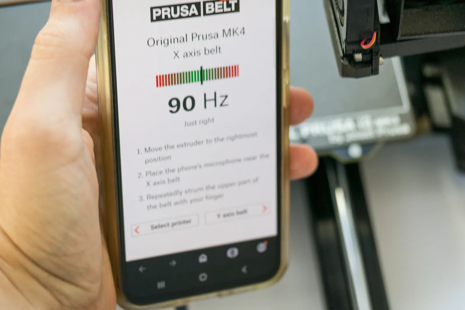 Bạn có thể dùng app kiểm tra căng đai của Prusa để hỗ trợ chỉnh: https://belt.connect.prusa3d.com