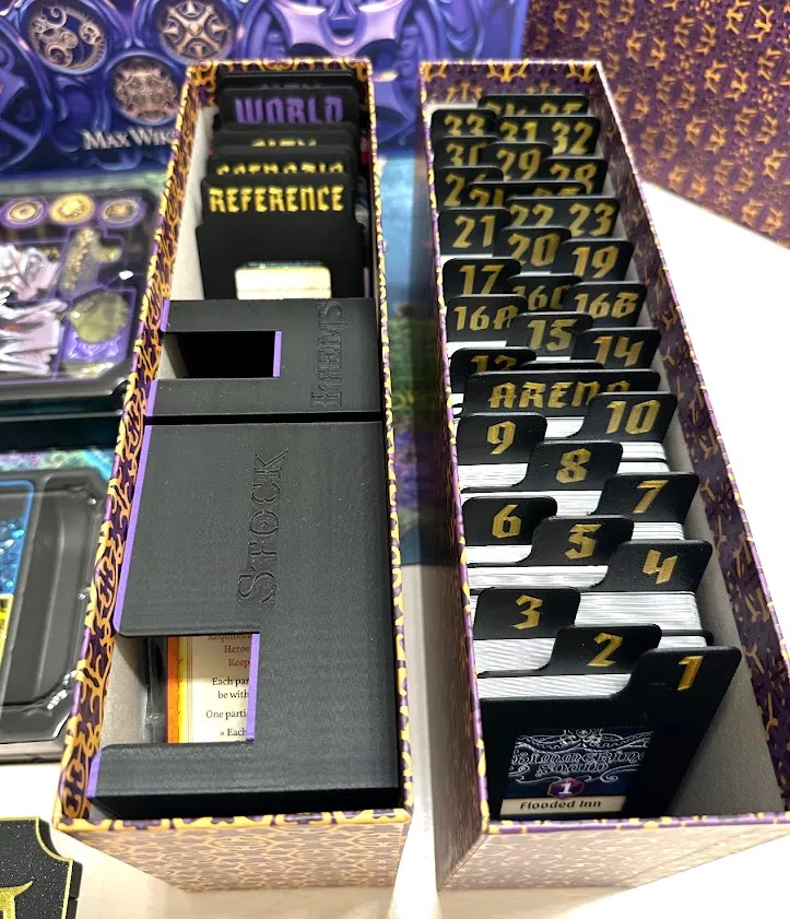 Bộ divider cho game Agemonia, thiết kế để vừa các hộp đi kèm và phân tách toàn bộ scenario. Có thêm divider cho world, city events, locked/unlocked, thẻ reference… Kèm file 3mf cho Prusa XL và STL cho in 1 màu.