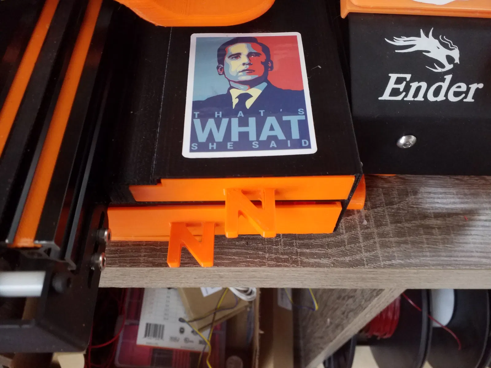 Mình in mẫu này bằng PLA. Thiết kế có chừa 1mm độ rơ ở tất cả các chiều để ngăn kéo trượt mượt. Mẫu này dành cho Ender 3 PRO, không phải Ender 3 vì hai máy dùng kiểu extrusion khác nhau cho y gantry. Trong hình mình dùng chữ N làm tay nắm, nhưng mình đã kèm sẵn phần top và bottom với một kiểu dáng khác.