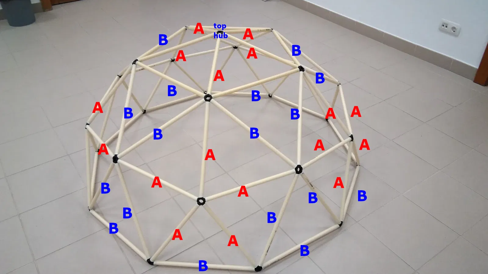 Mình đã dựng dome này cùng với học sinh ở nhiều độ tuổi khác nhau; đây là một hoạt động ngoại khóa rất hay và là minh họa trực quan cho việc toán và kỹ thuật gắn liền với nhau. Dán băng keo màu lên từng thanh, ví dụ đỏ cho thanh ‘A’ và xanh cho thanh ‘B’, sẽ giúp quá trình dựng dễ hơn; chỉ cần một bản vẽ dome kèm giải thích cơ bản là đủ để người tham gia có thể lắp ráp trơn tru và tự chủ.