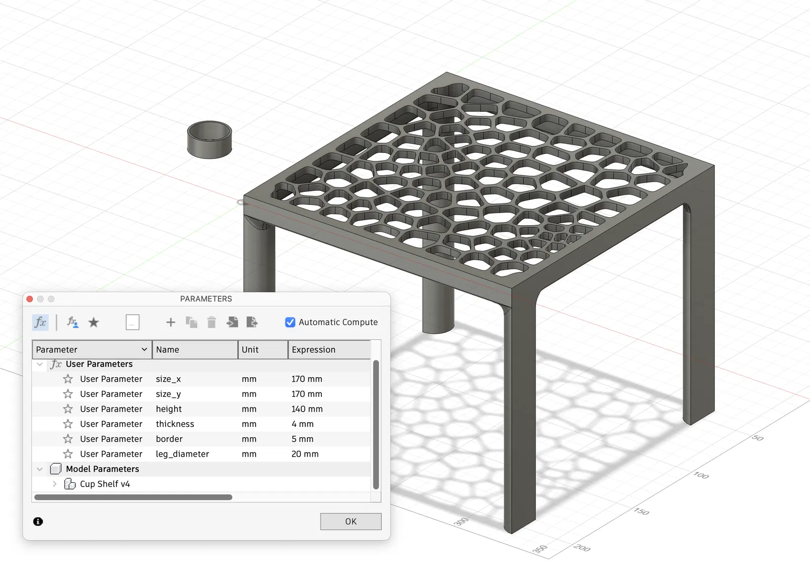 Chào các bạn, hôm nay mình xin giới thiệu một mẫu kệ cốc 3D siêu tiện lợi, có khả năng xếp chồng lên nhau, giúp bạn tối ưu không gian lưu trữ một cách hiệu quả. Mẫu kệ này được thiết kế theo dạng parametric, nghĩa là bạn hoàn toàn có thể tùy chỉnh kích thước, chiều cao sao cho phù hợp với nhu cầu và không gian sử dụng của mình. Với thiết kế dạng lưới tổ ong độc đáo, chiếc kệ không chỉ có tính thẩm mỹ cao mà còn giúp thoát nước tốt, rất lý tưởng để đựng ly, cốc, chai lọ hoặc thậm chí là các vật dụng nhỏ khác.