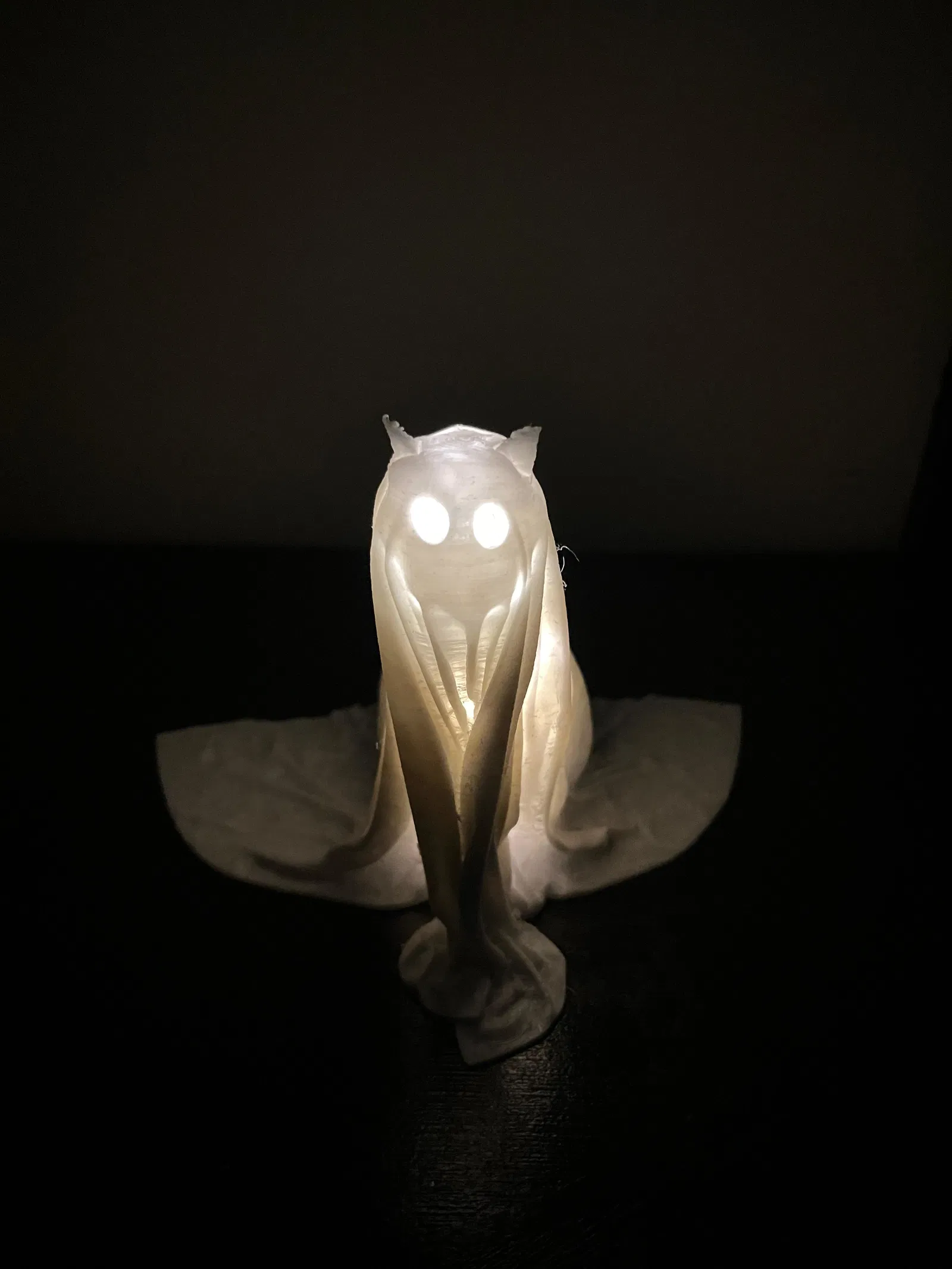 Mẫu in 3D này không chỉ dừng lại ở vẻ ngoài ấn tượng mà còn có tính ứng dụng cao. Đặc biệt, phần "mắt" của chú mèo được thiết kế rỗng bên trong, bạn hoàn toàn có thể đặt một vài chiếc đèn LED nhỏ hoặc dây đèn trang trí vào đó để tạo hiệu ứng phát sáng lung linh. Hãy tưởng tượng, vào buổi tối, đôi mắt của Boo sẽ tỏa sáng, tạo nên một khung cảnh huyền ảo, đúng chất Halloween. Đây chắc chắn sẽ là một món đồ trang trí độc đáo và thú vị, khiến bạn bè của bạn phải trầm trồ.