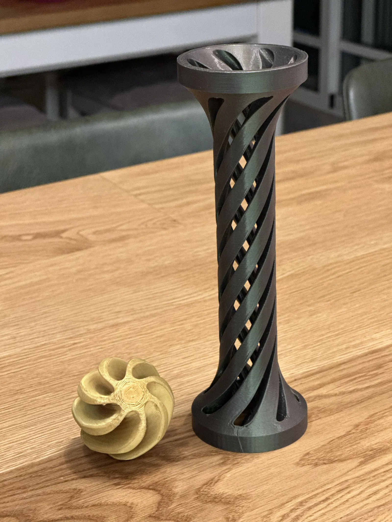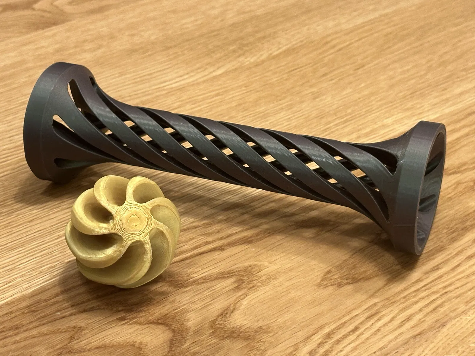 Ống vortex cực dài kèm viên bi xoay, được thiết kế để in chạm giới hạn chiều cao của Prusa MK4. Ống không cần supports (chỉ cần brim), còn viên bi cần supports. Khuyên giảm speed 70–60% ở 1/3 phần trên.