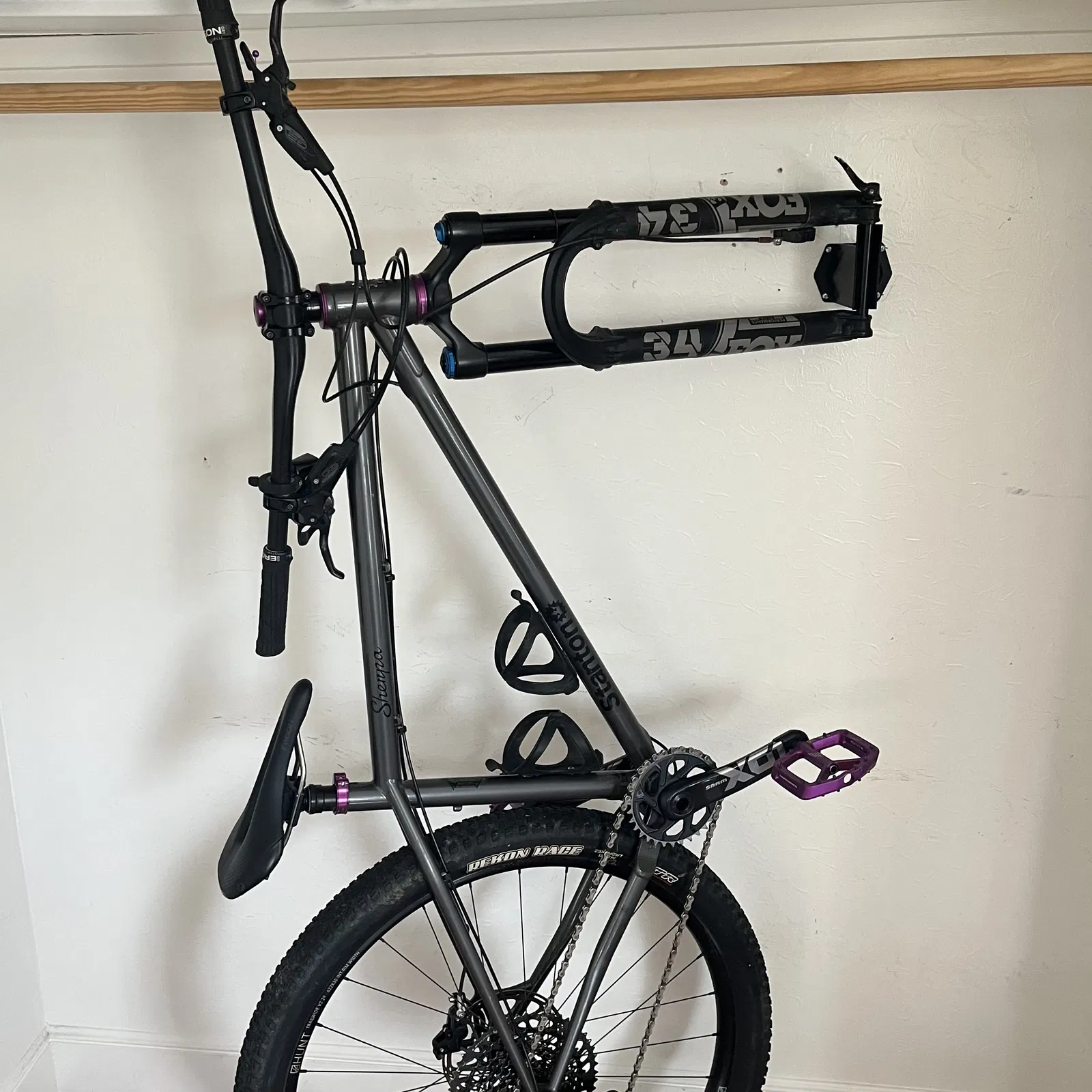 Mount dùng snap fit để giữ xe cân bằng trên bánh sau. Mount có khoảng hở cho post mount brake calipers để xe có thể xoay sát gần như song song với tường.