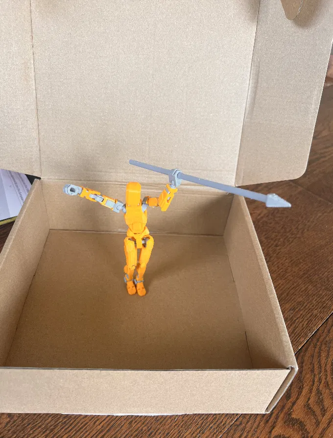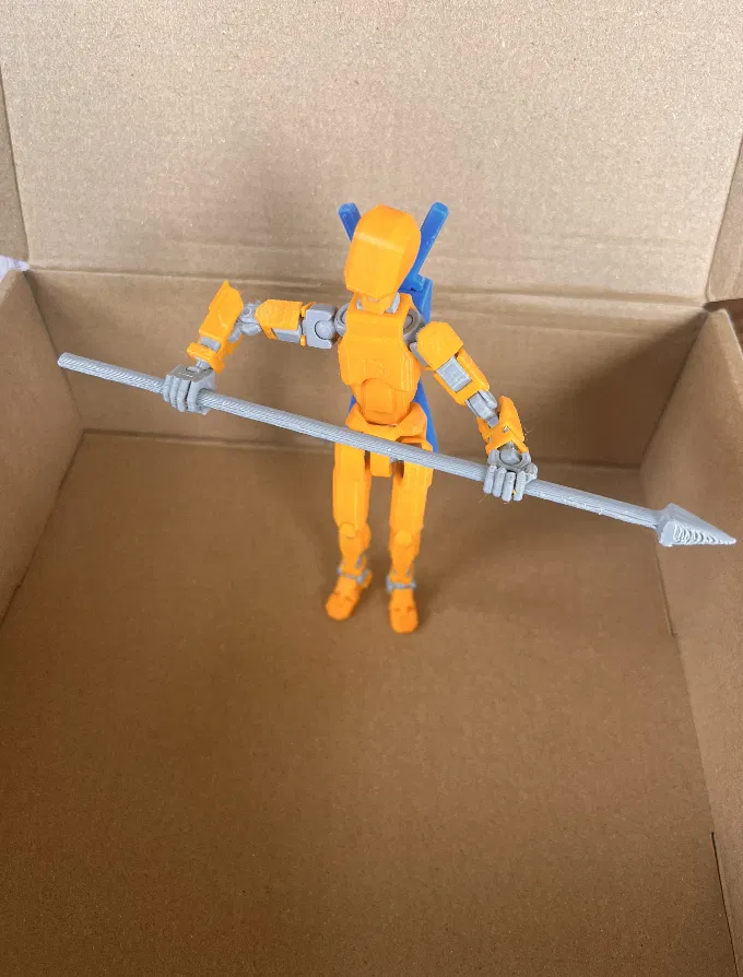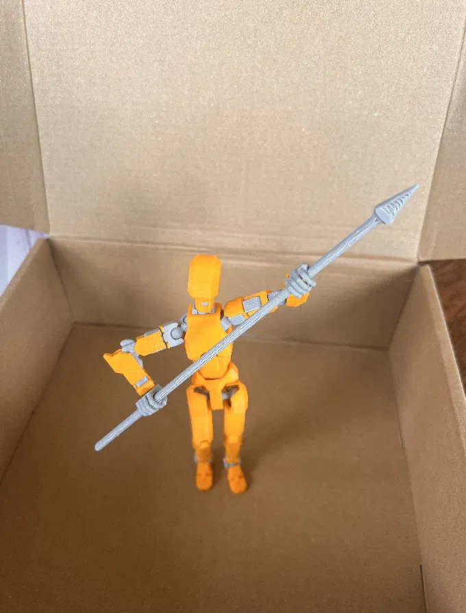 Phụ kiện Dummy 13 Spear in 3D, thiết kế vừa khít tay Dummy 13, cầm chắc để tạo dáng action hay đứng truyền thống. Khuyến nghị in sideways, dùng supports và infill từ 15% trở lên để ra form đẹp.