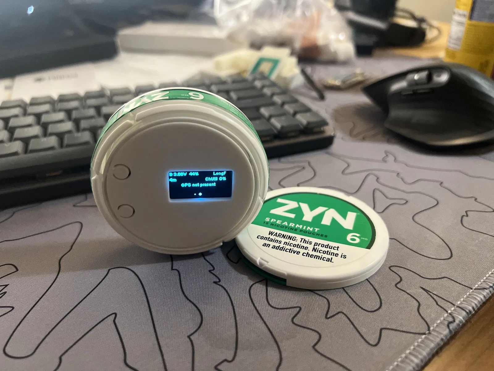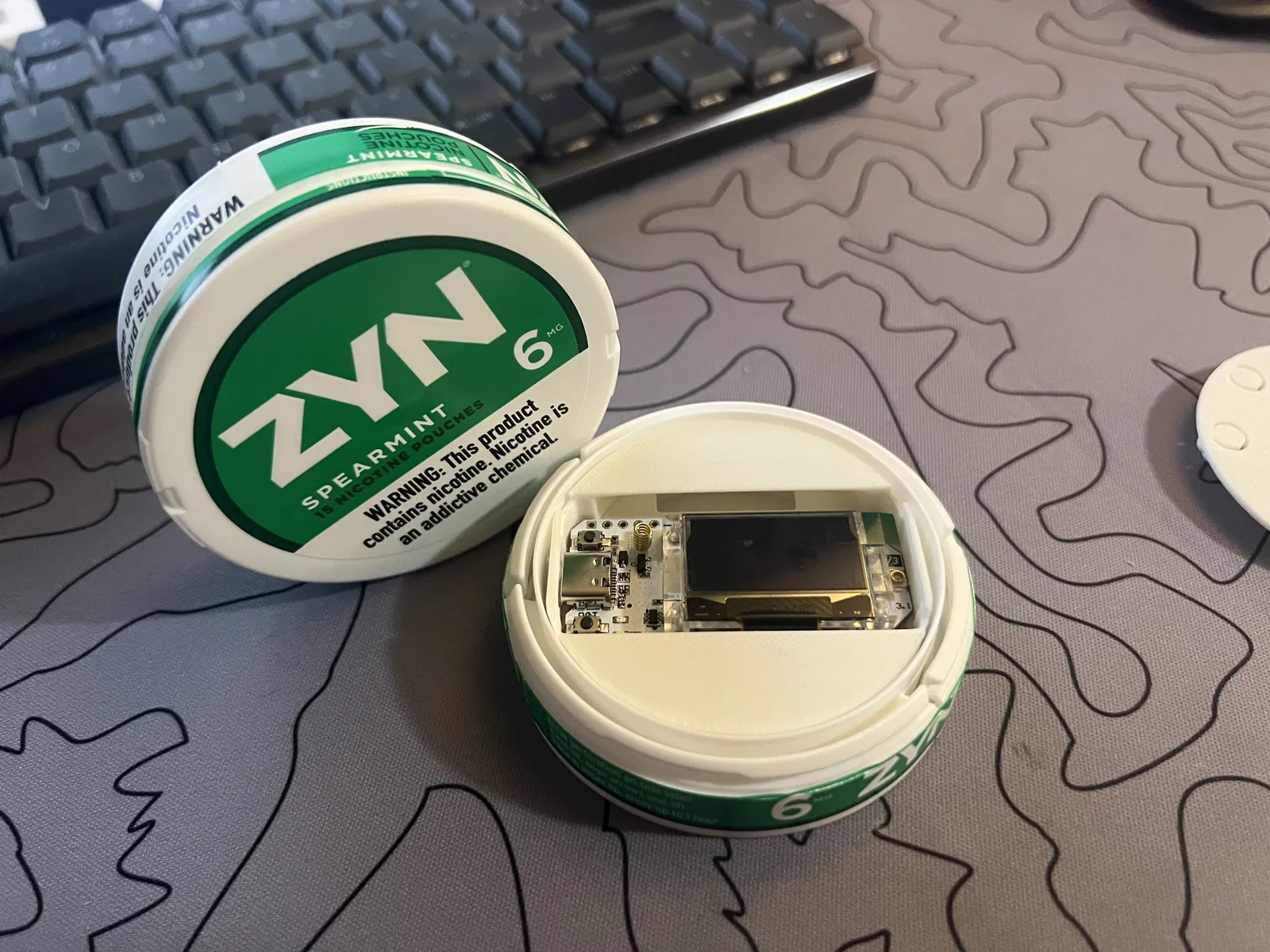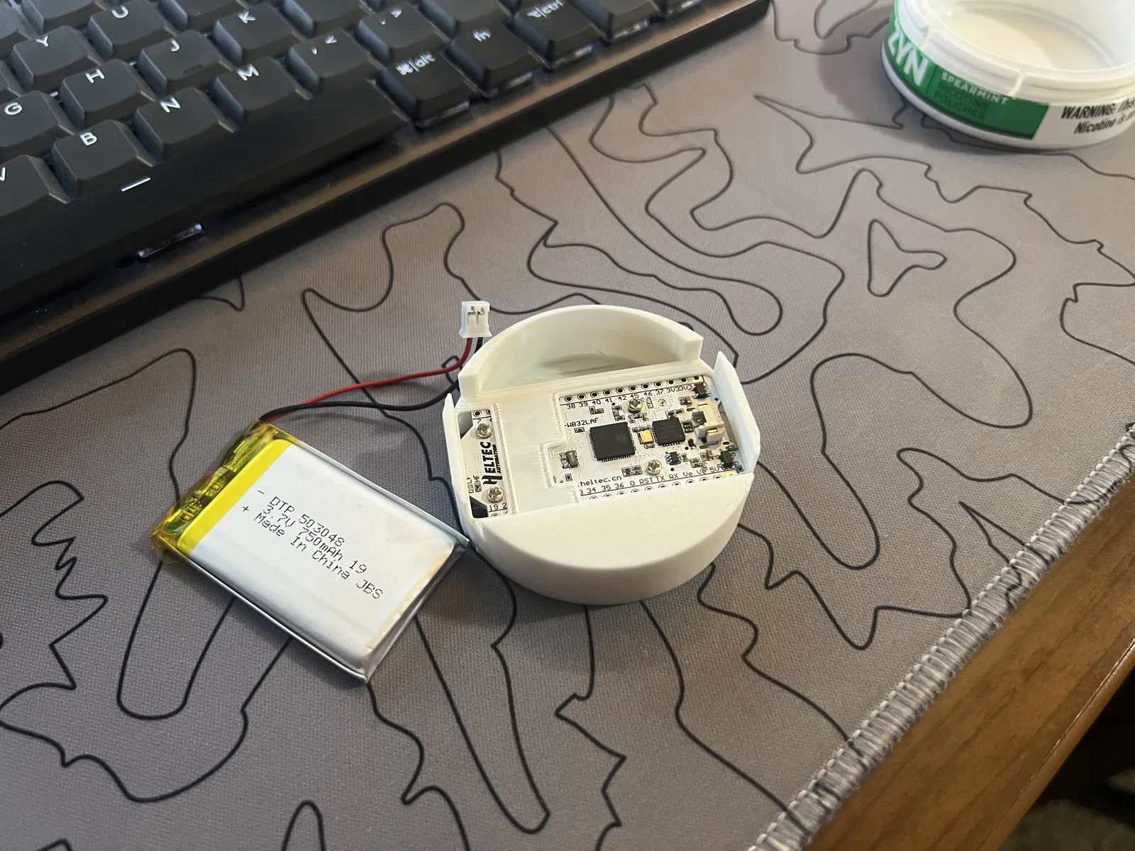 Case ZYNtastic cho board meshtastic Heltec v3, vừa khít trong lon ZYN, có chỗ cho antenna đi kèm và pin 750mAh (503048). Có thể tháo cụm để sạc hoặc khoét lỗ USB-C rồi dán cố định.
